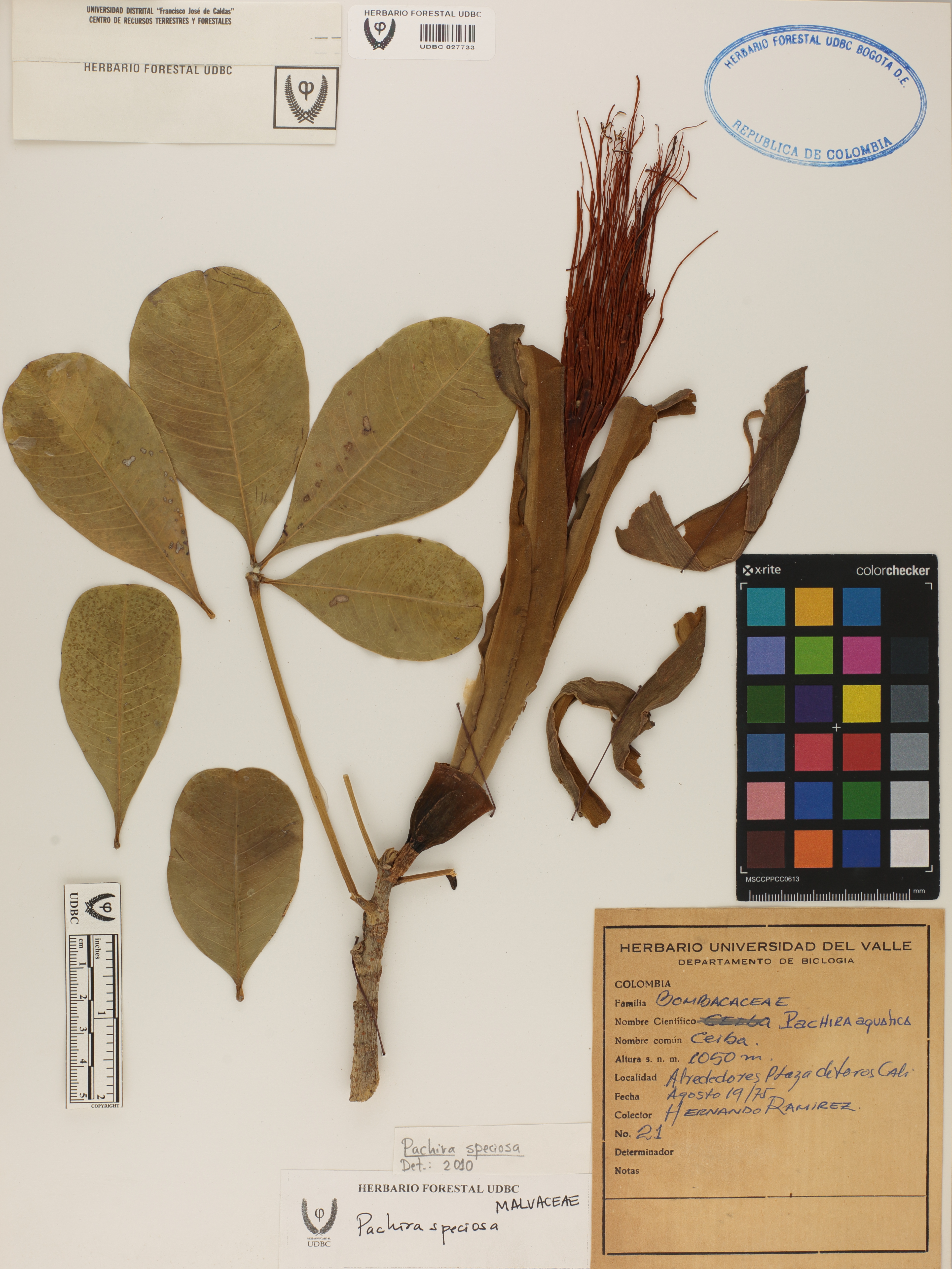 | dc.description | Fotografía del ejemplar Ramírez, H. 21, determinado como Pachira speciosa en el año 2010 | |