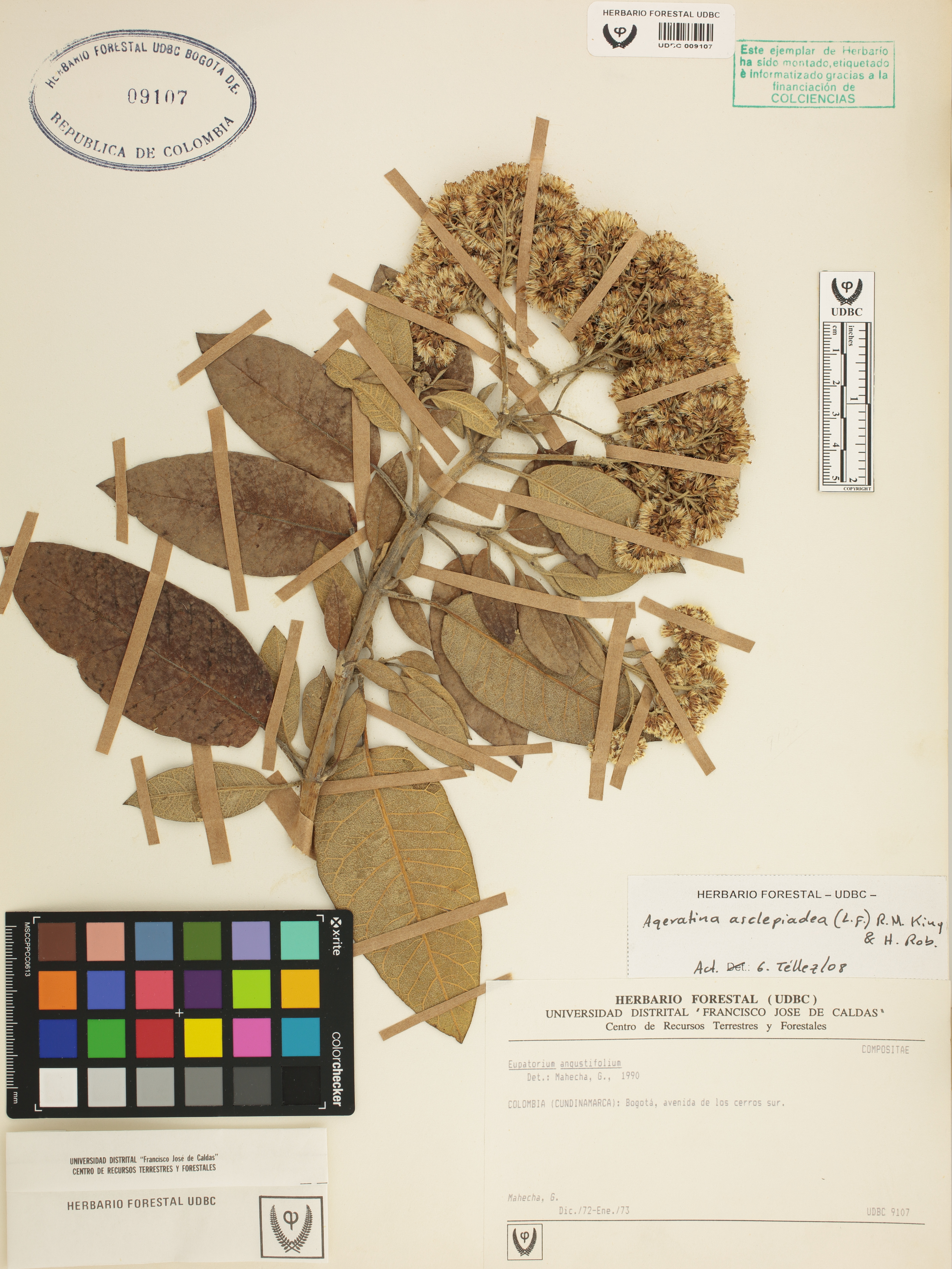 Fotografía del ejemplar Mahecha, G., determinado como Ageratina asclepiadea en el año 2008