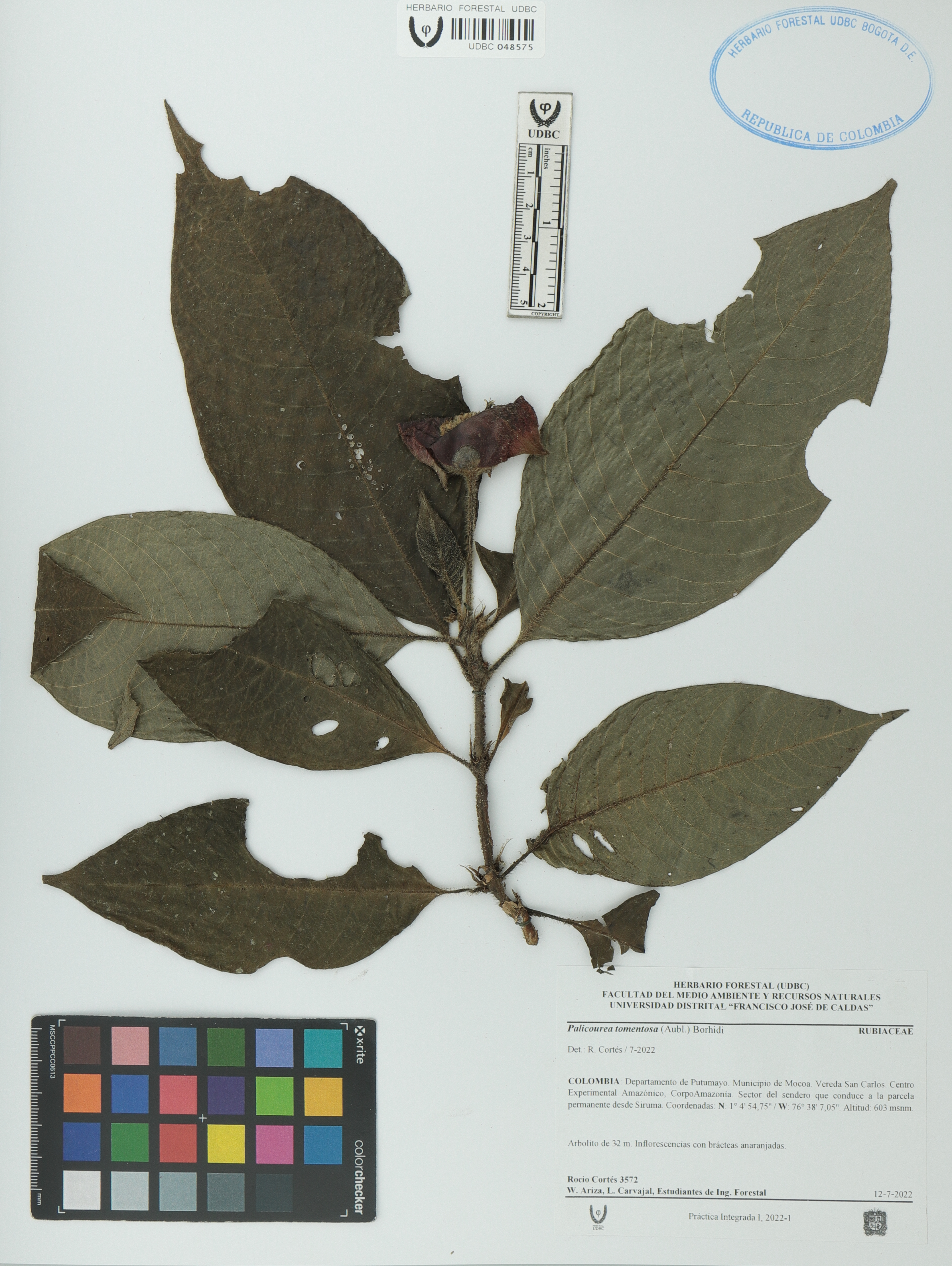 Fotografía del ejemplar Cortés, Rocío 3572, determinado como Palicourea tomentosa en el año 2022