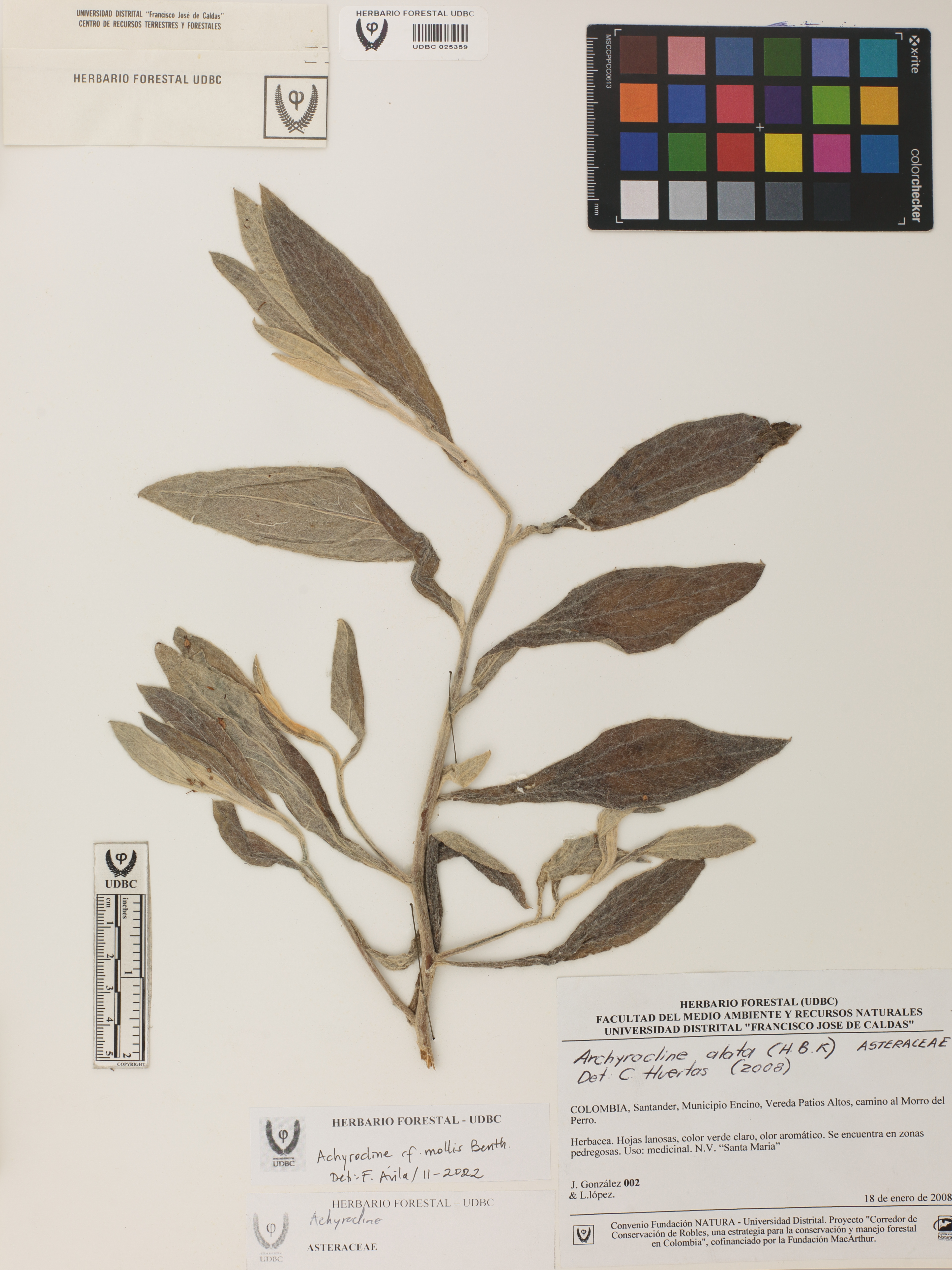 Fotografía del ejemplar González, J. 2, determinado como Achyrocline mollis en el año 2022