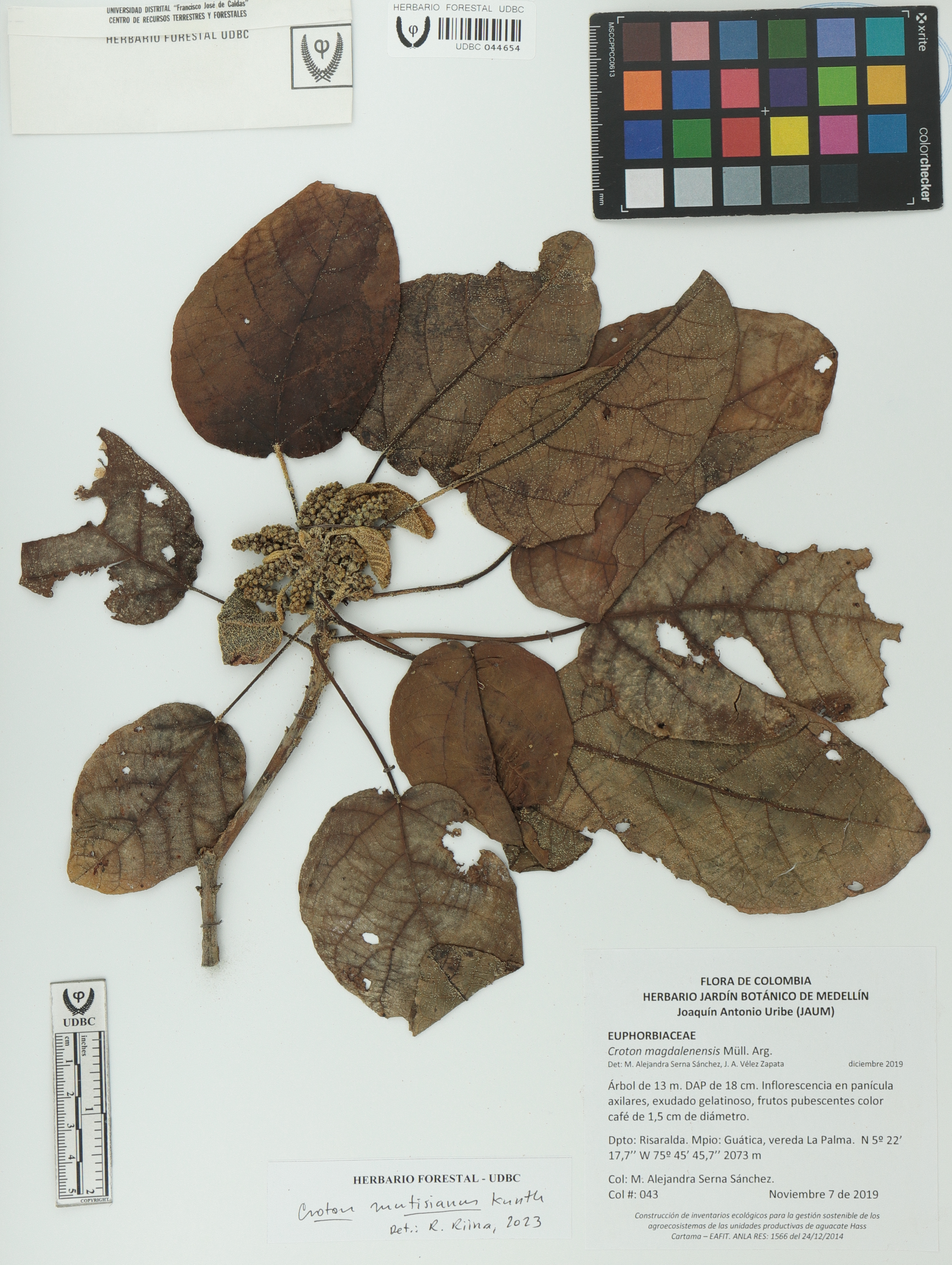 Fotografía del ejemplar Serna-Sánchez, M. 43, determinado como Croton mutisianus en el año 2023