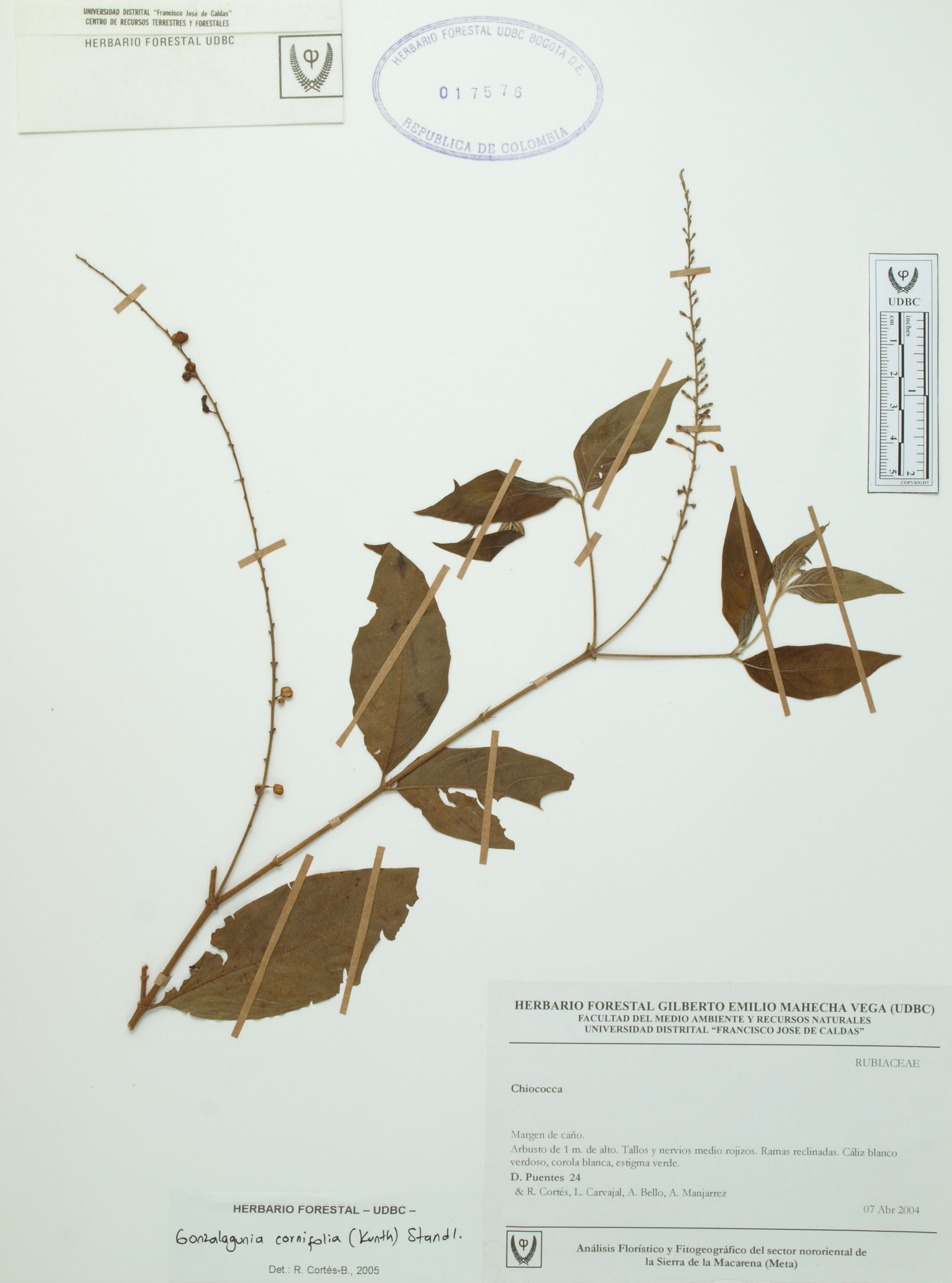 Fotografía del ejemplar Puentes, D. 24, determinado como Gonzalagunia cornifolia en el año 2005