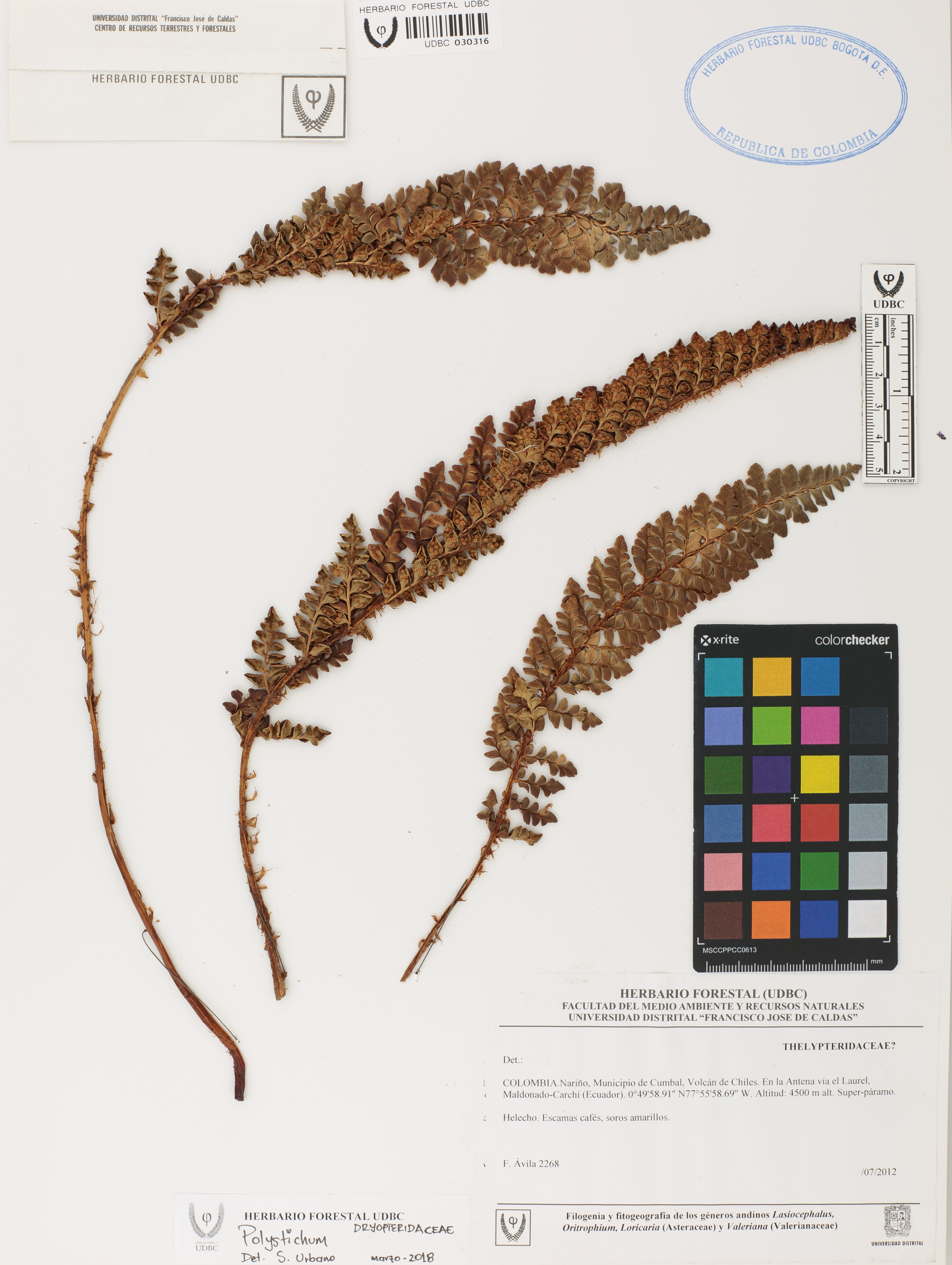 | dc.description | Fotografía del ejemplar Ávila, F. 2268, determinado como Polystichum sp. en el año 2018 | |