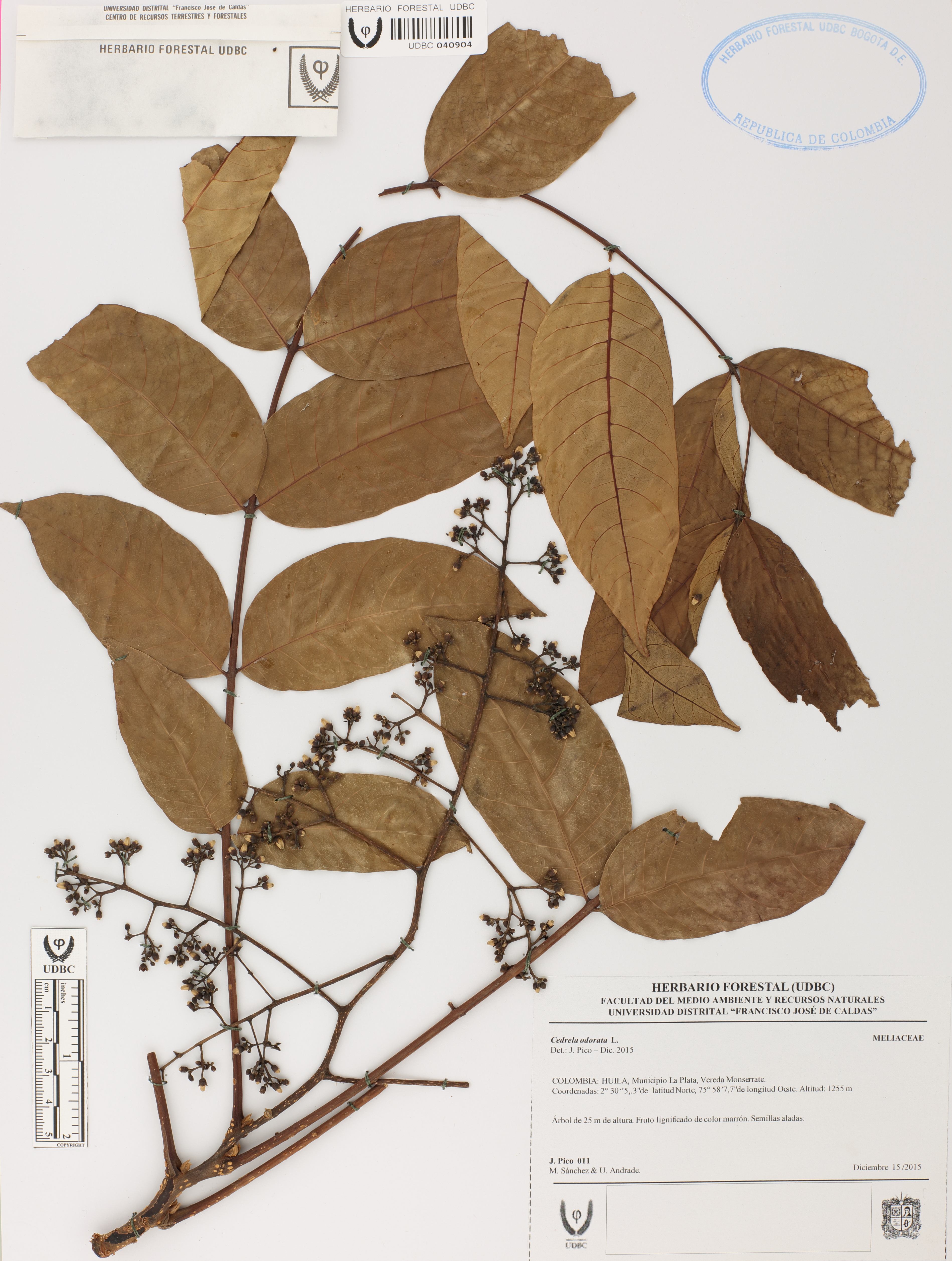 Fotografía del ejemplar Pico, J. 11, determinado como Cedrela odorata en el año 2015