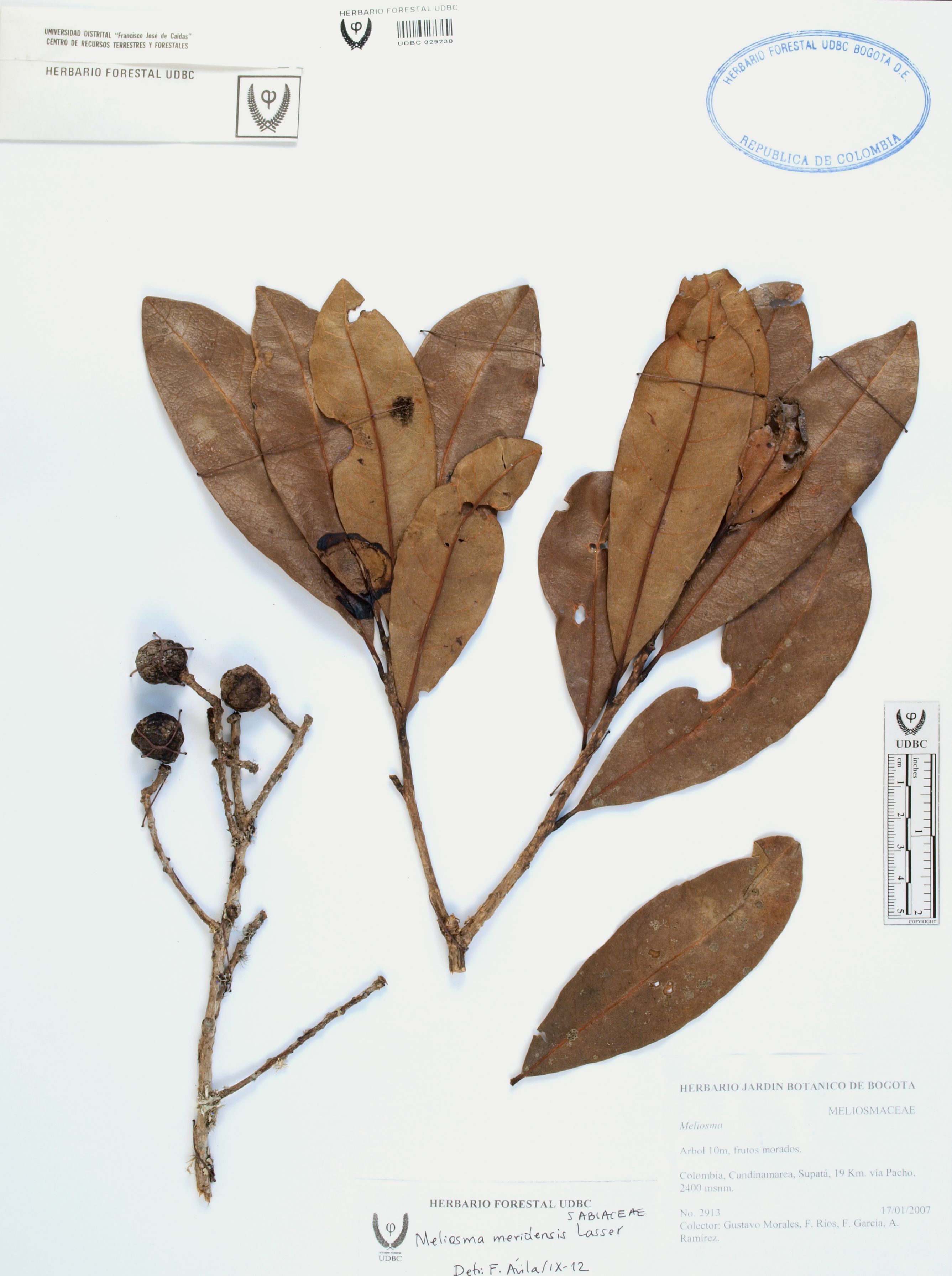 Fotografía del ejemplar Morales, G. 2913, determinado como Meliosma meridensis en el año 2012