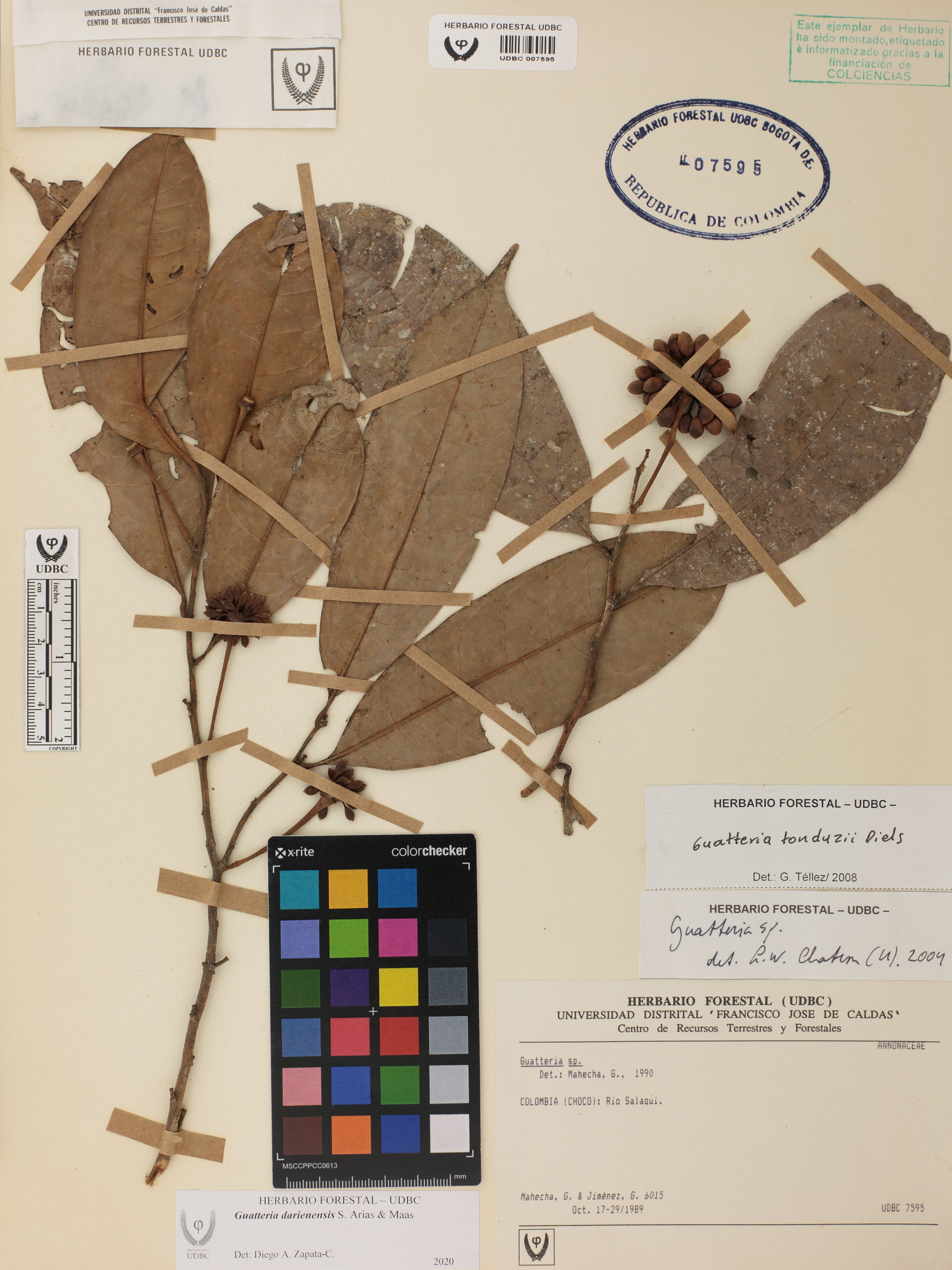 Fotografía del ejemplar Mahecha, G. 6015, determinado como Guatteria darienensis en el año 2020