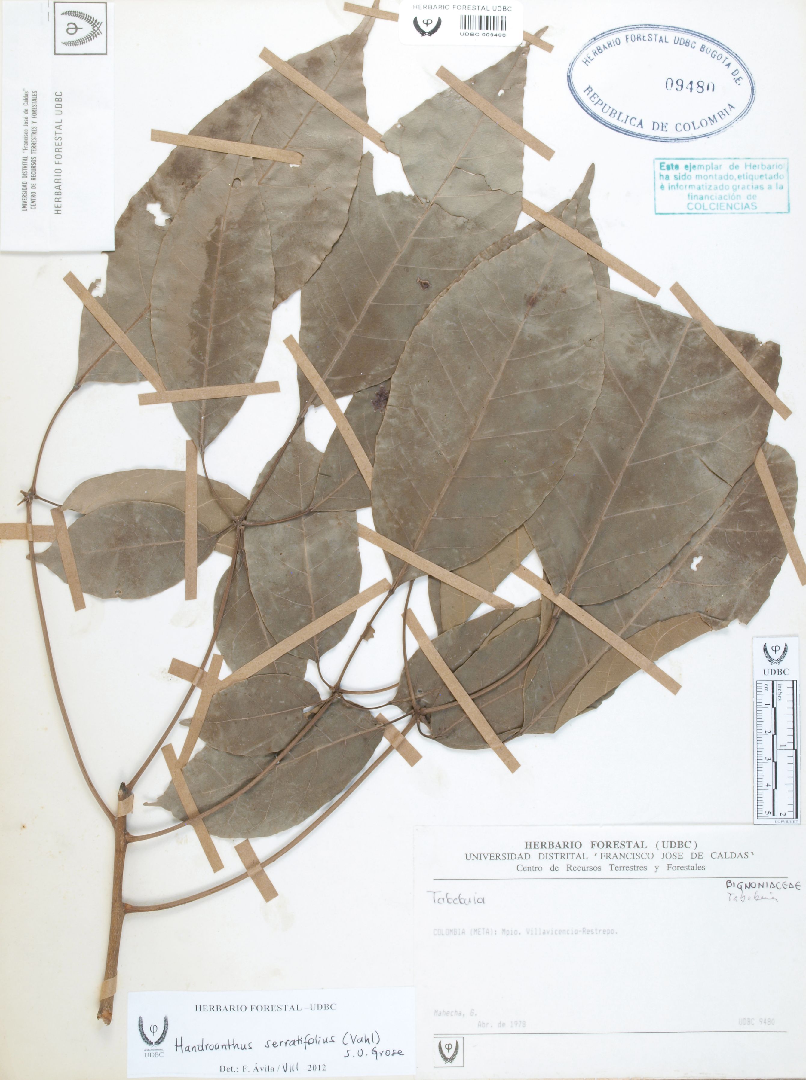 Fotografía del ejemplar Mahecha, G., determinado como Handroanthus serratifolius en el año 2012