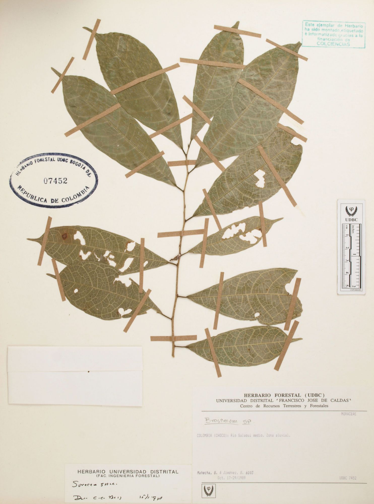 | dc.description | Fotografía del ejemplar Mahecha, G. 6103, determinado como Sorocea sp. en el año 1997 | |