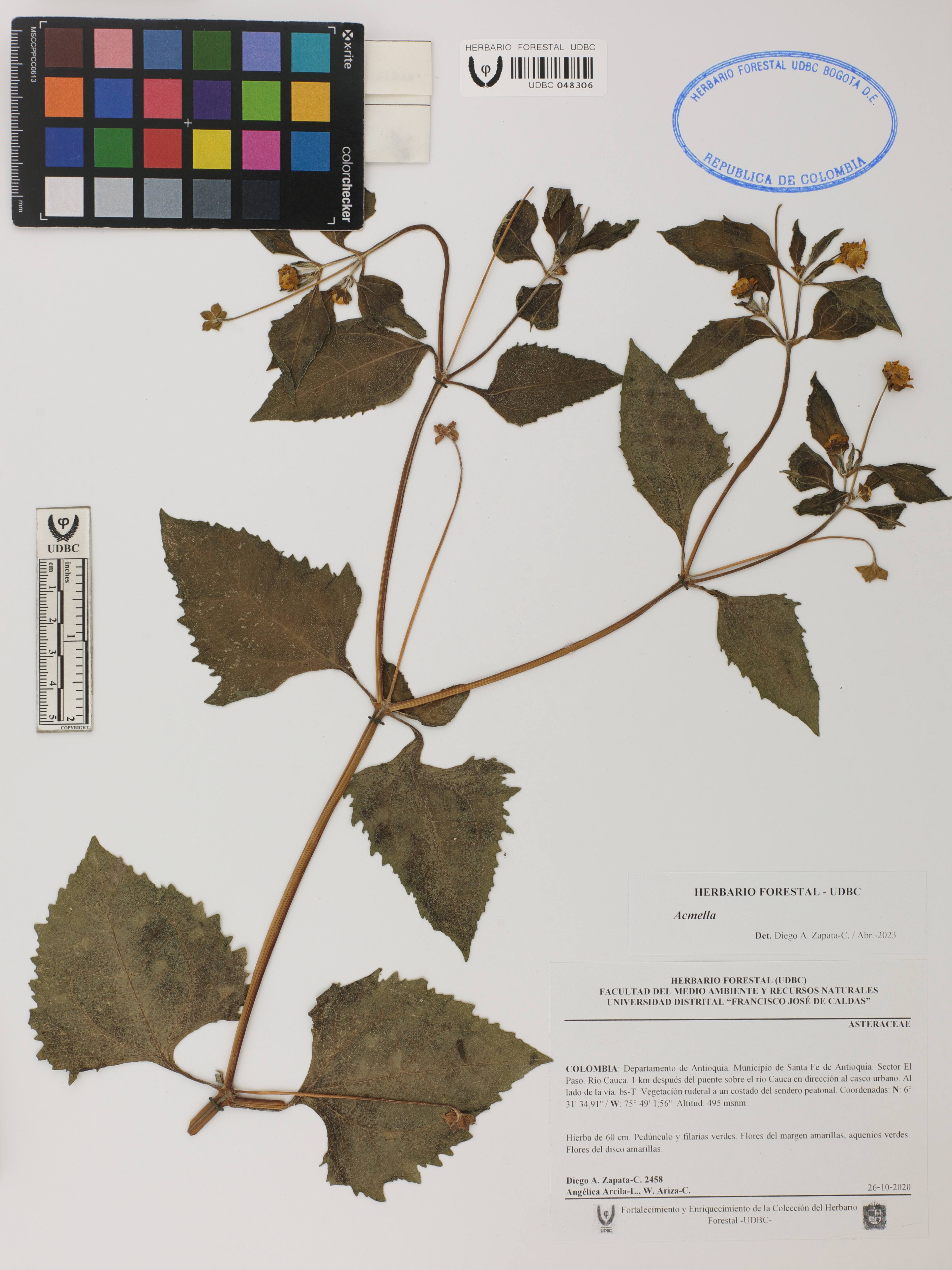 Fotografía del ejemplar Zapata-C., D. 2458, determinado como Acmella sp. en el año 2023