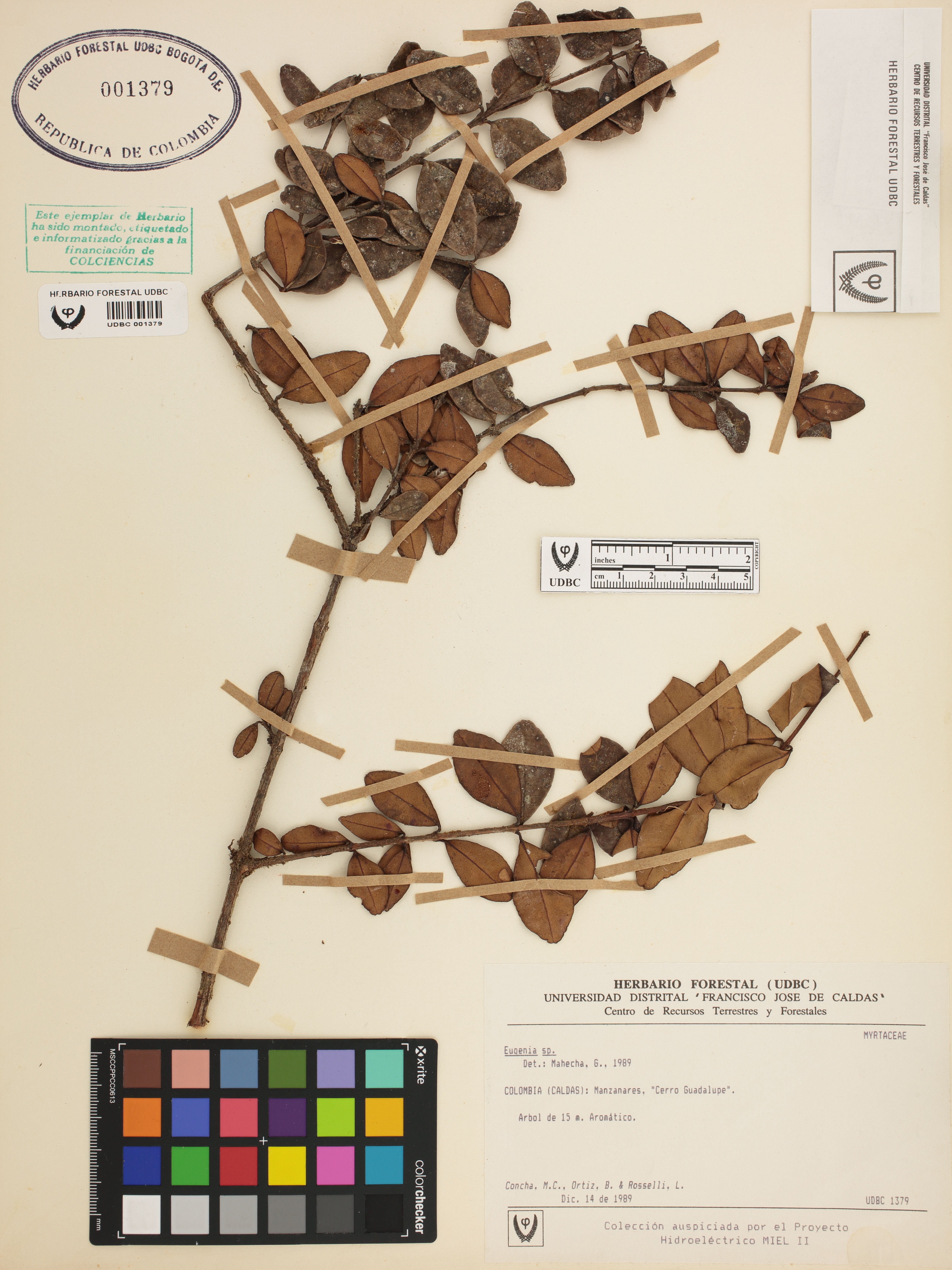 Fotografía del ejemplar Concha, M., determinado como Eugenia sp. en el año 1989