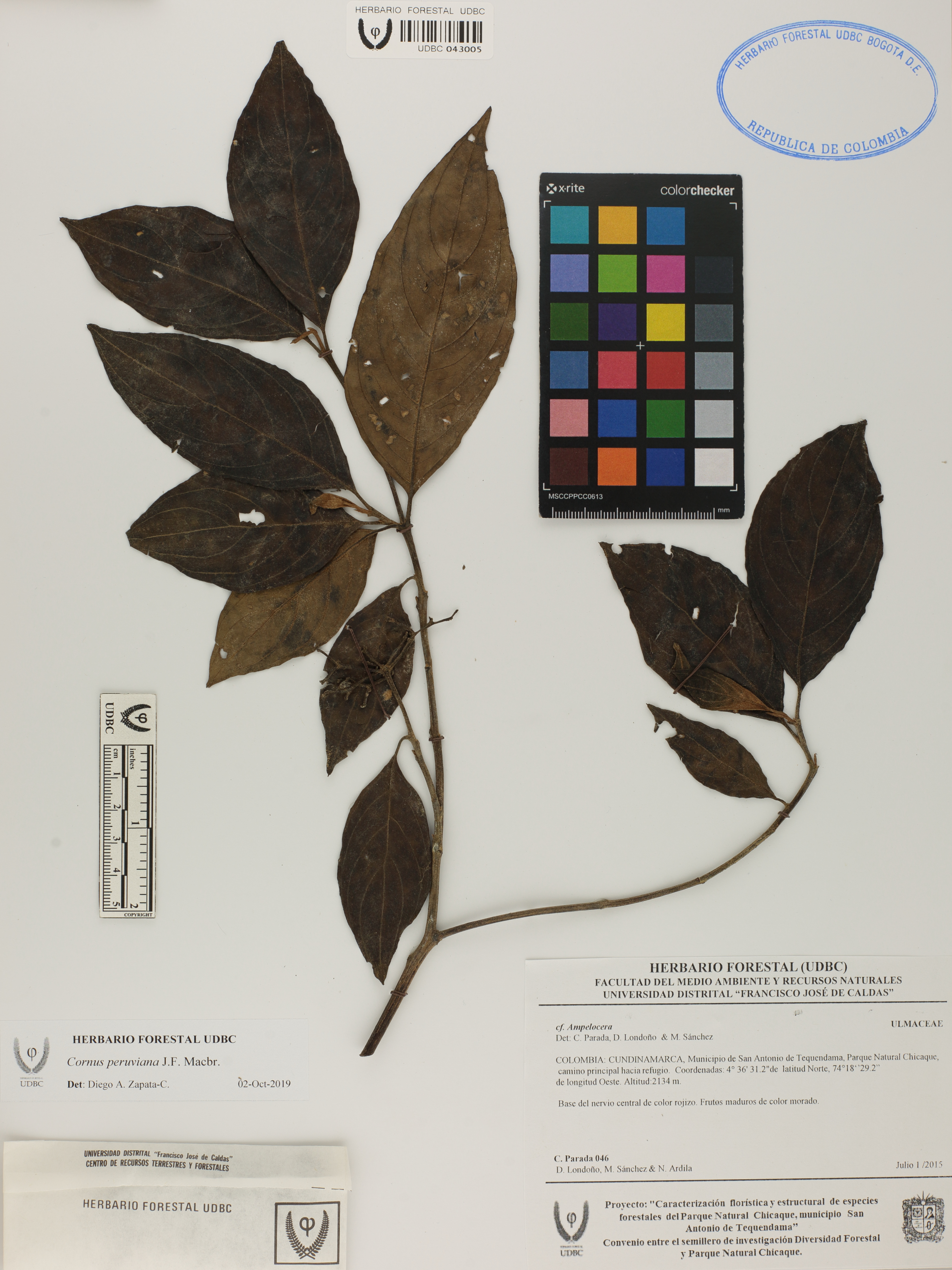 | dc.description | Fotografía del ejemplar Parada, C. 46, determinado como Cornus peruviana en el año 2019 | |