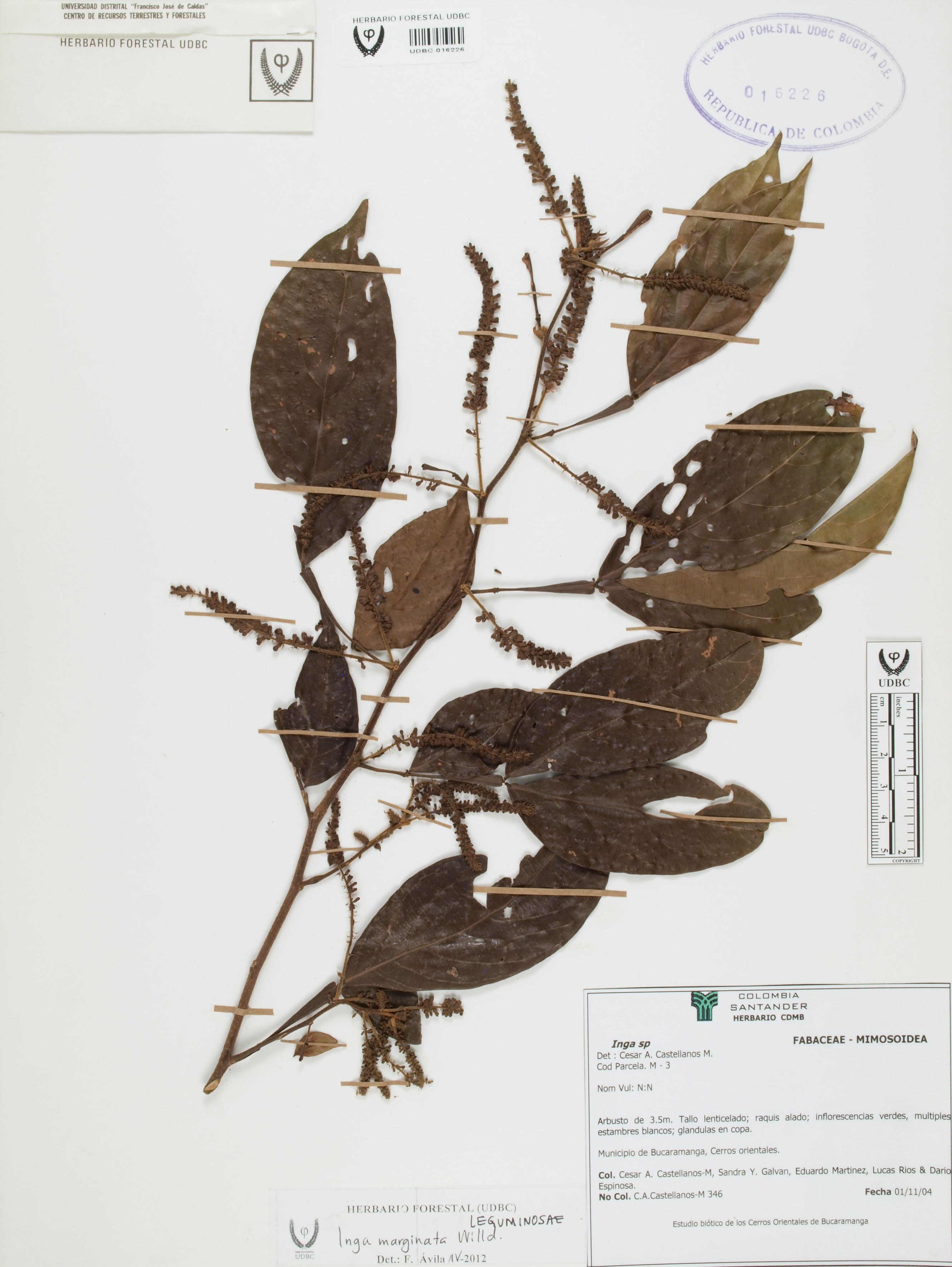 Fotografía del ejemplar Castellanos, C. 346, determinado como Inga marginata en el año 2012