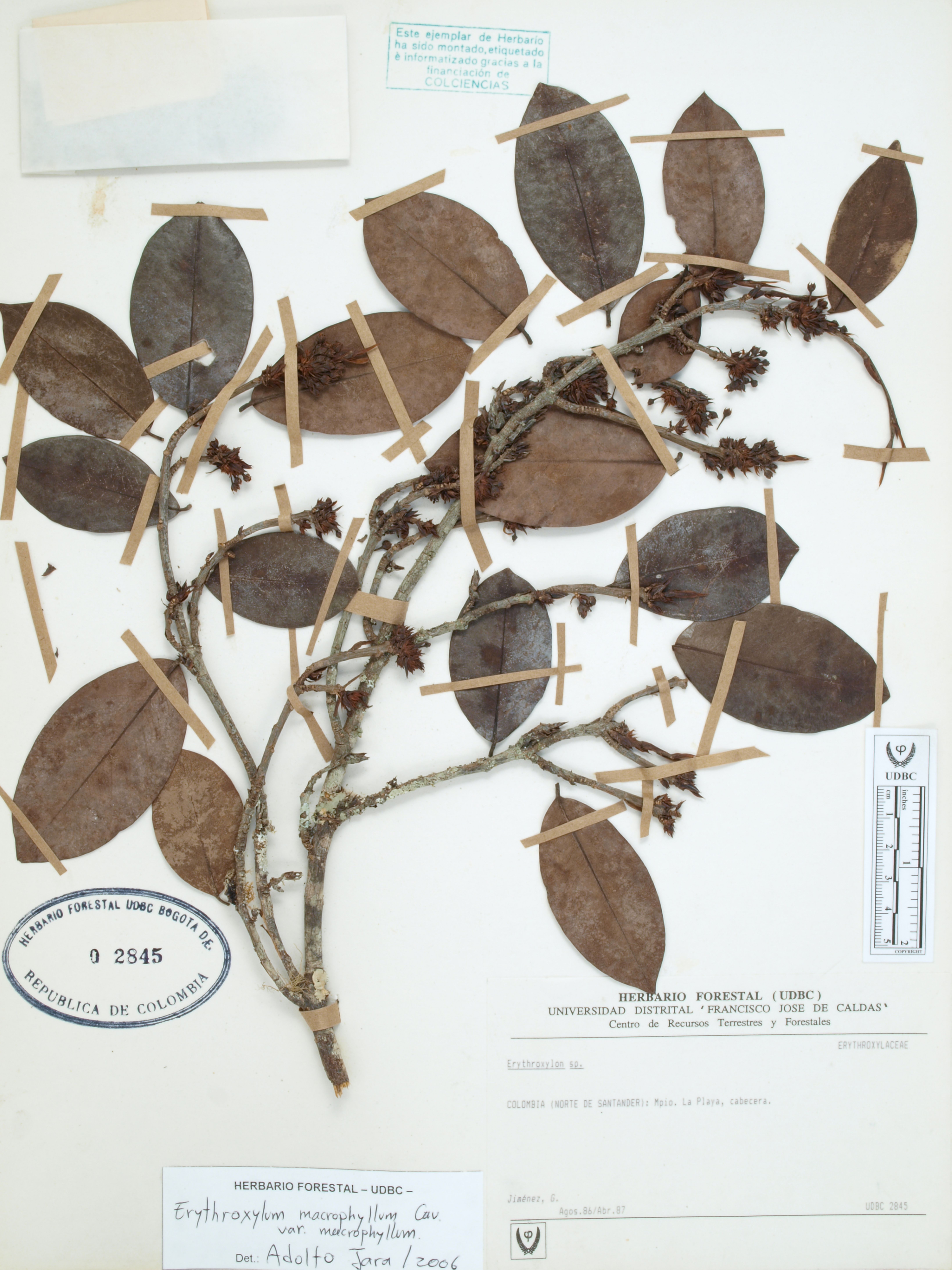 Fotografía del ejemplar Jiménez, G., determinado como Erythroxylum macrophyllum var. macrophyllum en el año 2006