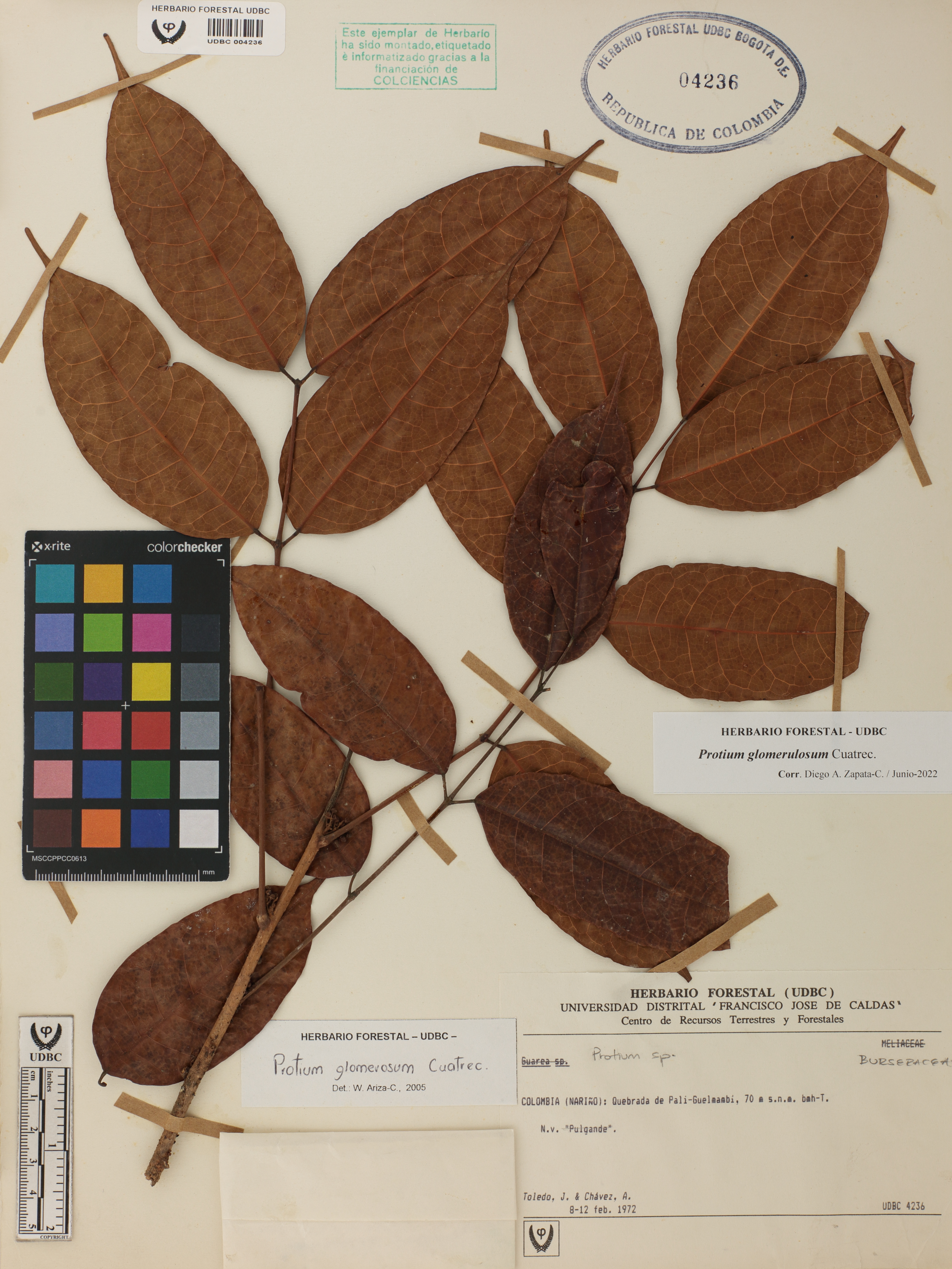 Fotografía del ejemplar Toledo, J., determinado como Protium glomerulosum en el año 2005