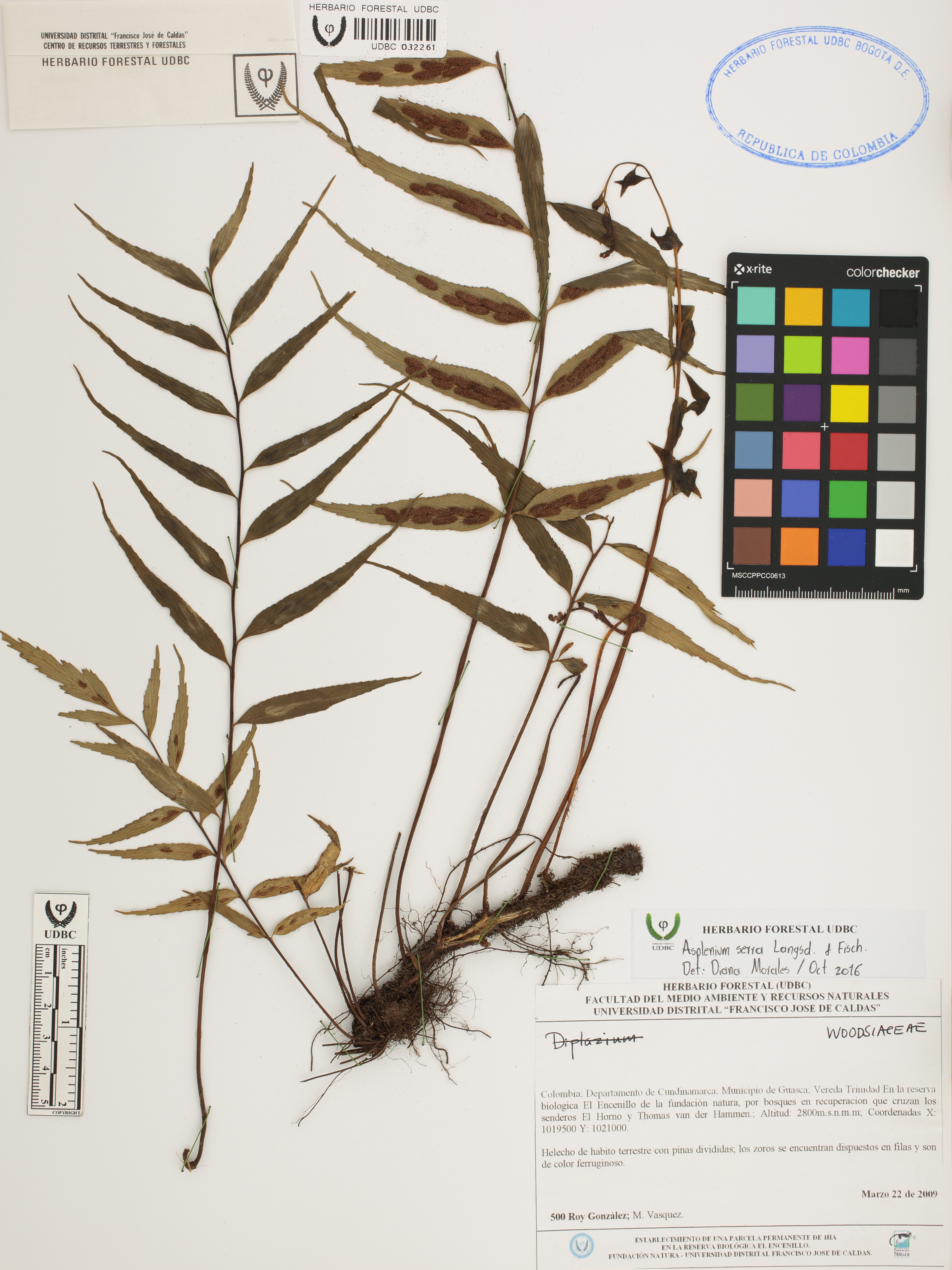Fotografía del ejemplar González, R. 500, determinado como Asplenium serra en el año 2016