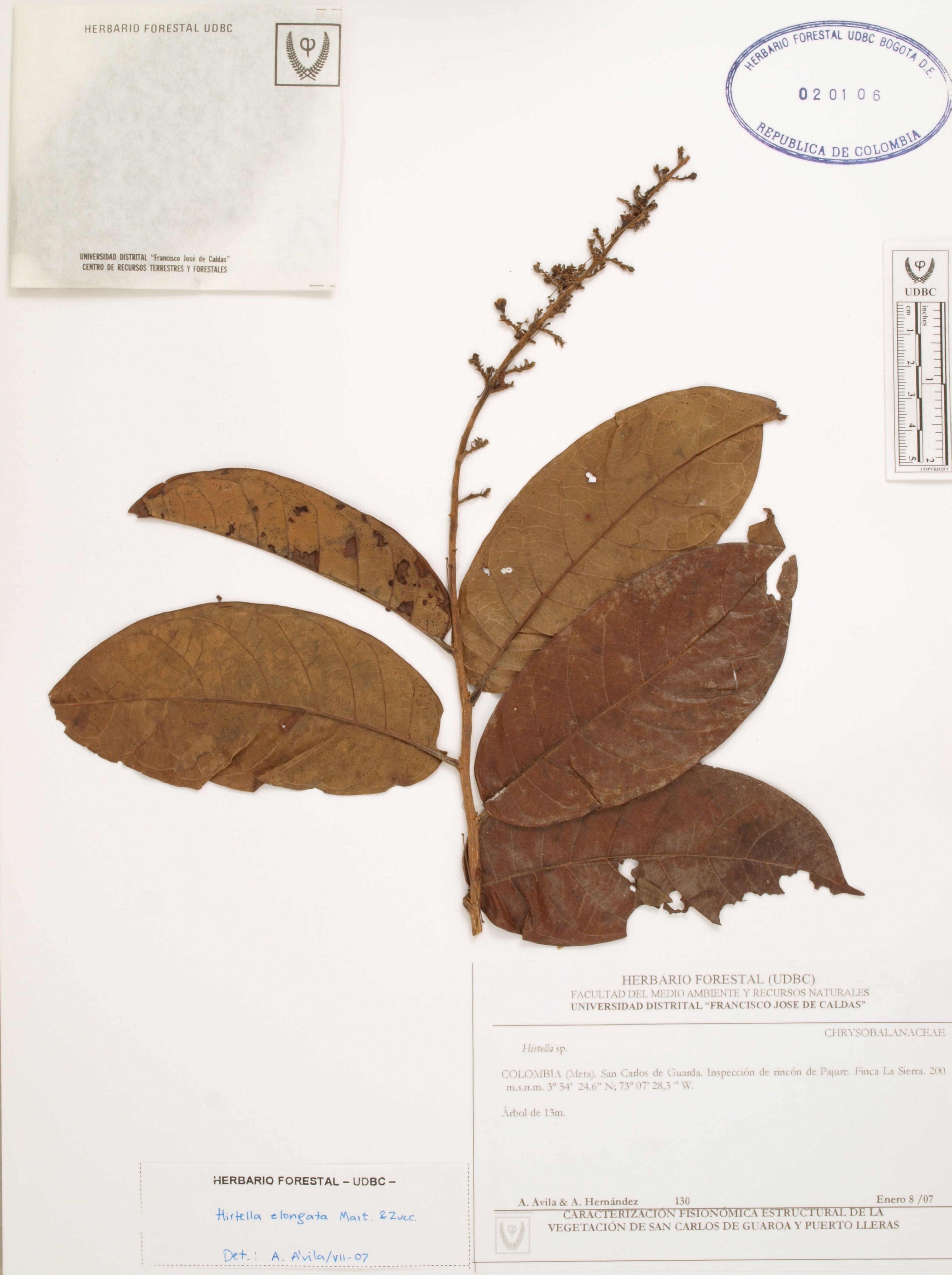 | dc.description | Fotografía del ejemplar Ávila, F. 130, determinado como Hirtella elongata en el año 2007 | |