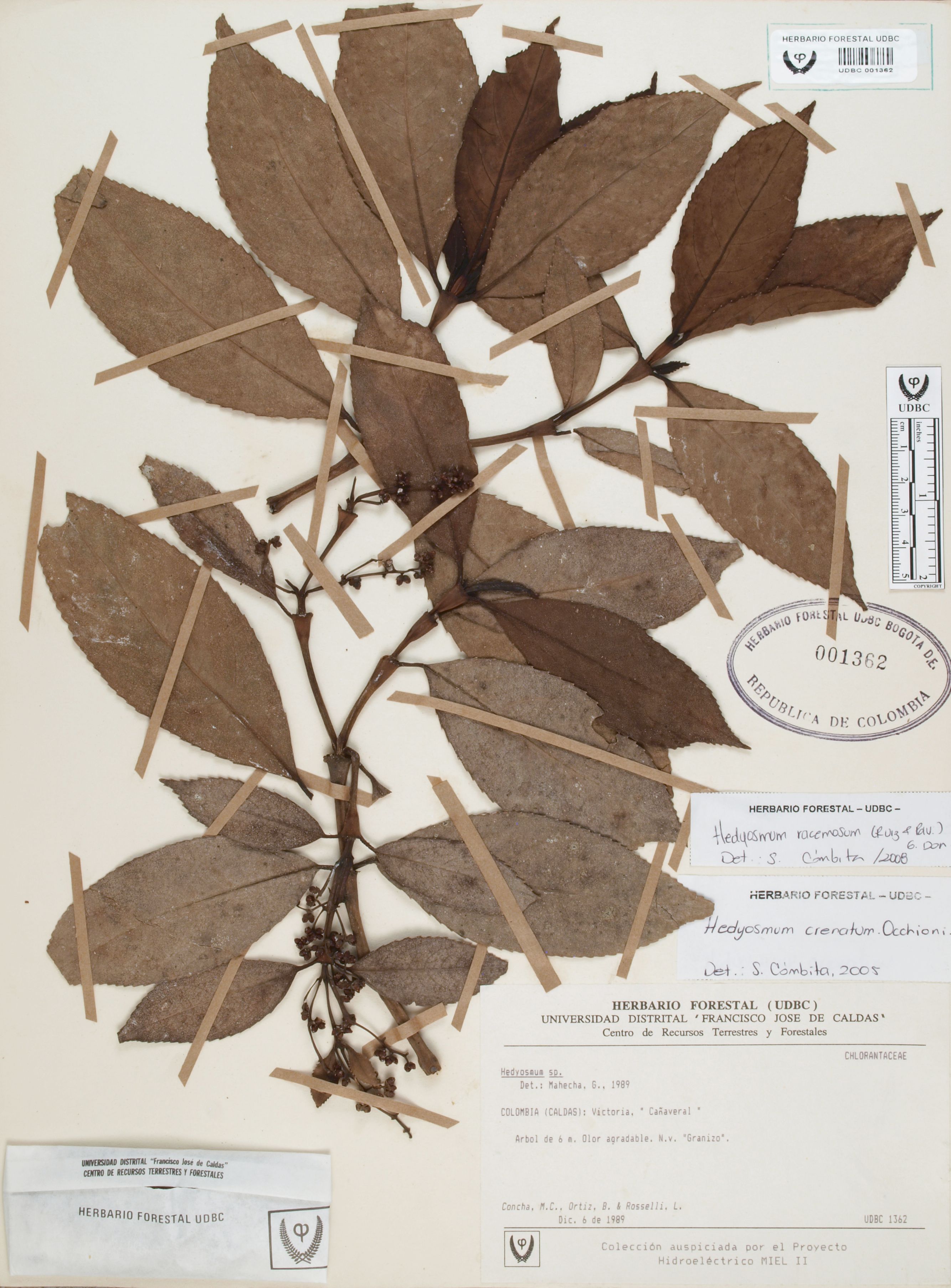 Fotografía del ejemplar Concha, M., determinado como Hedyosmum racemosum en el año 2008