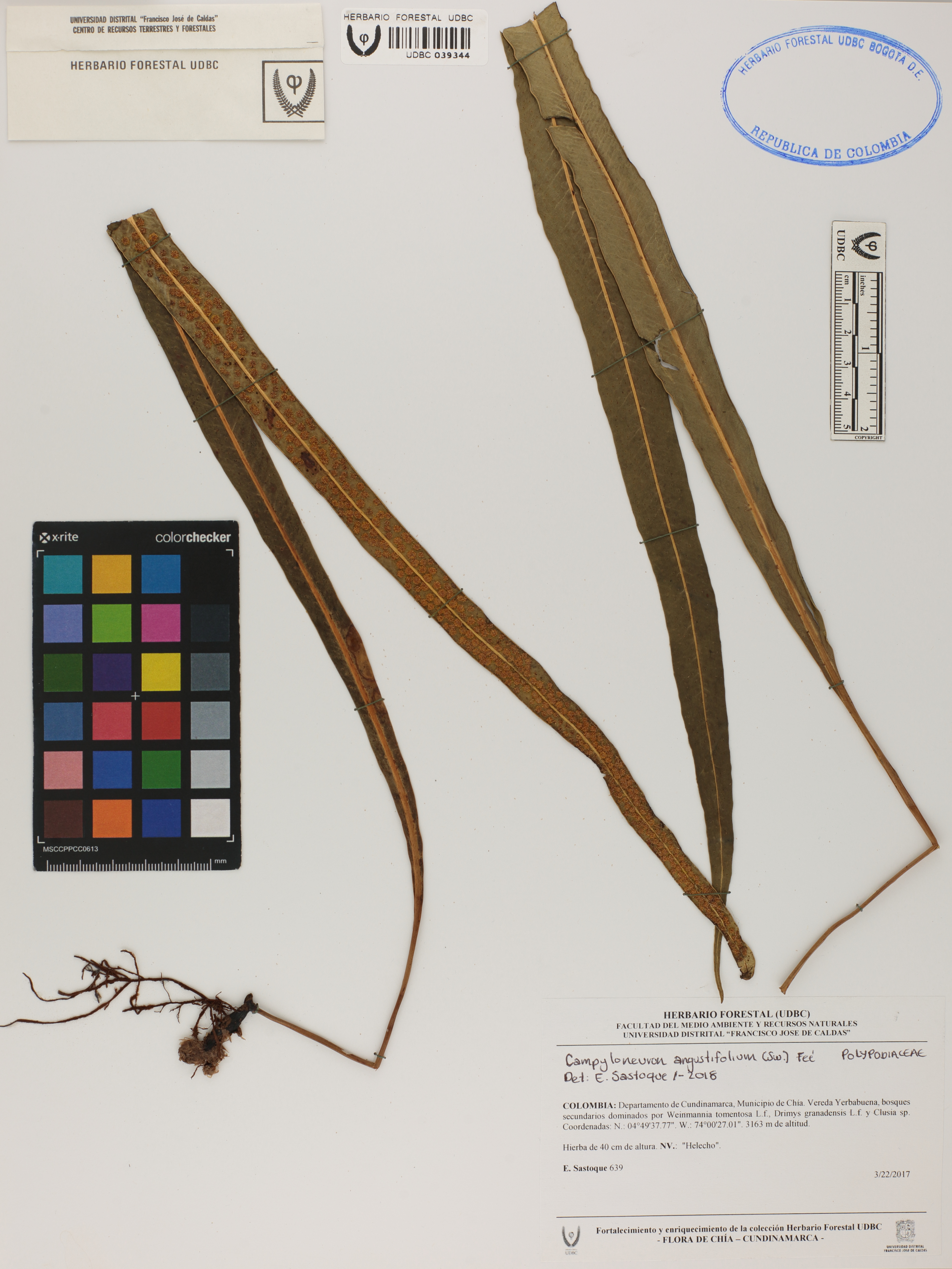 | dc.description | Fotografía del ejemplar Sastoque, E. 639, determinado como Campyloneurum angustifolium en el año 2018 | |