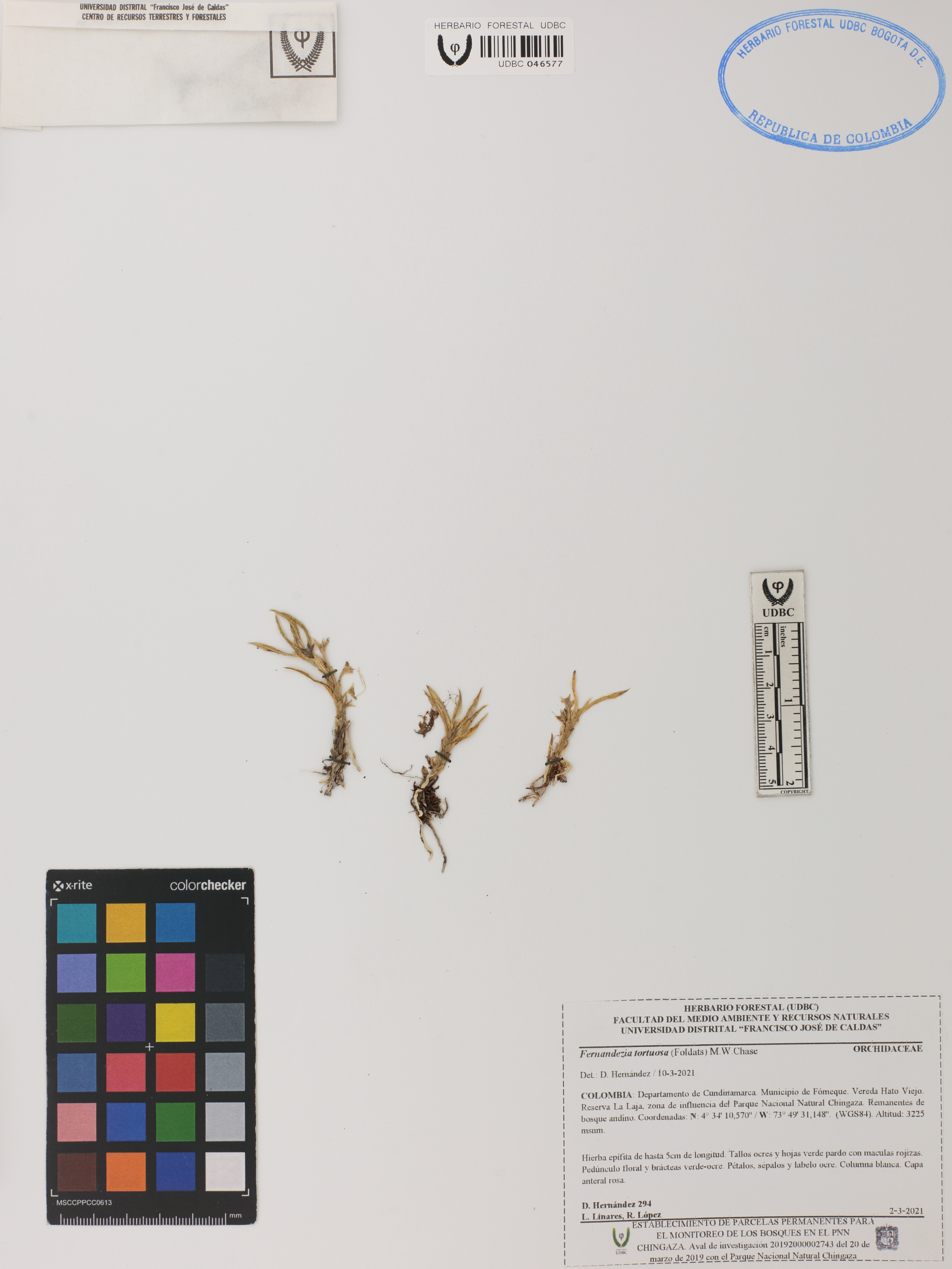 Fotografía del ejemplar Hernández, H. 294, determinado como Fernandezia tortuosa en el año 2021
