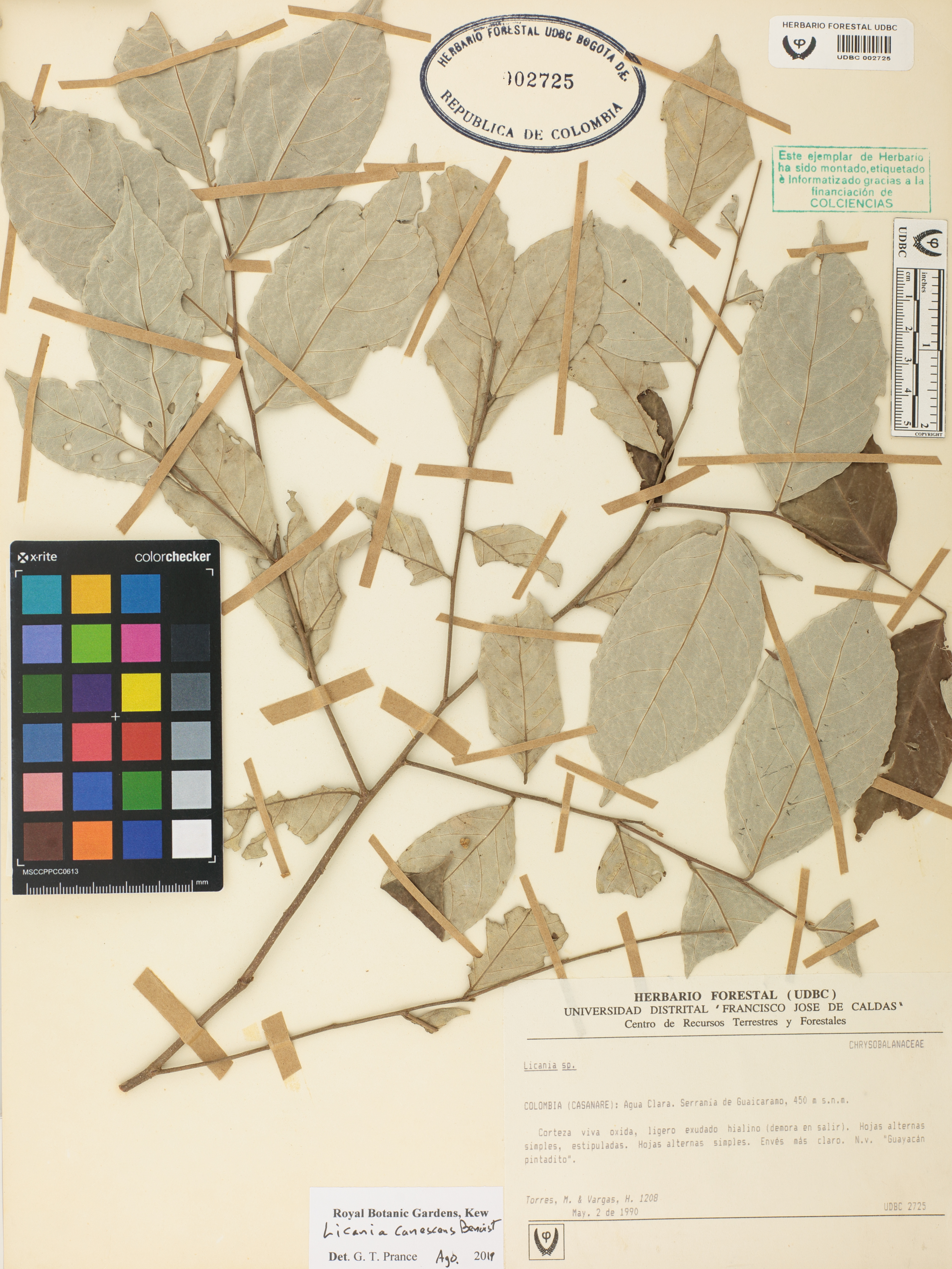 Fotografía del ejemplar Torres, M., determinado como Licania canescens en el año 2019