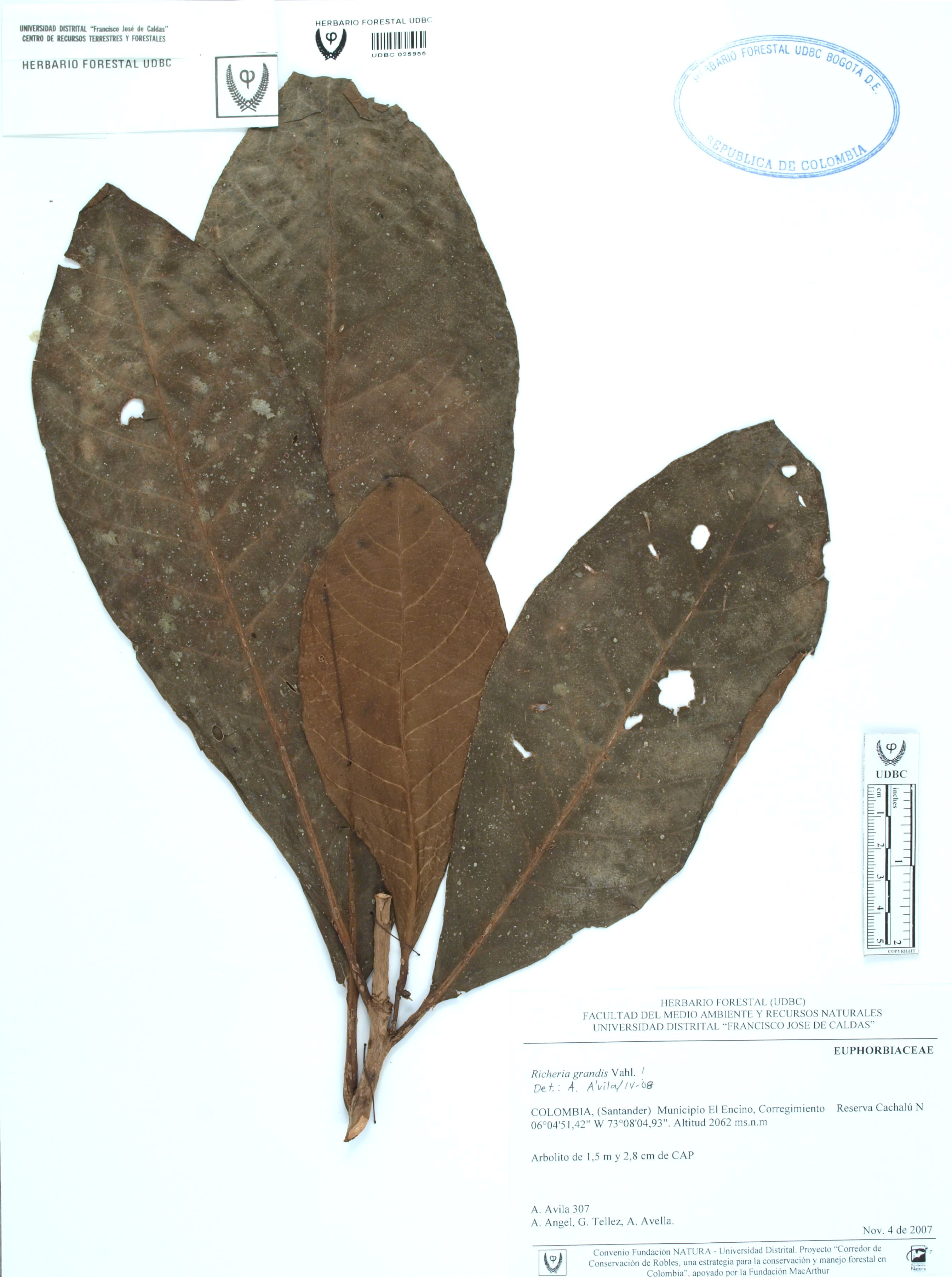 | dc.description | Fotografía del ejemplar Ávila, F. 307, determinado como Richeria grandis en el año 2008 | |