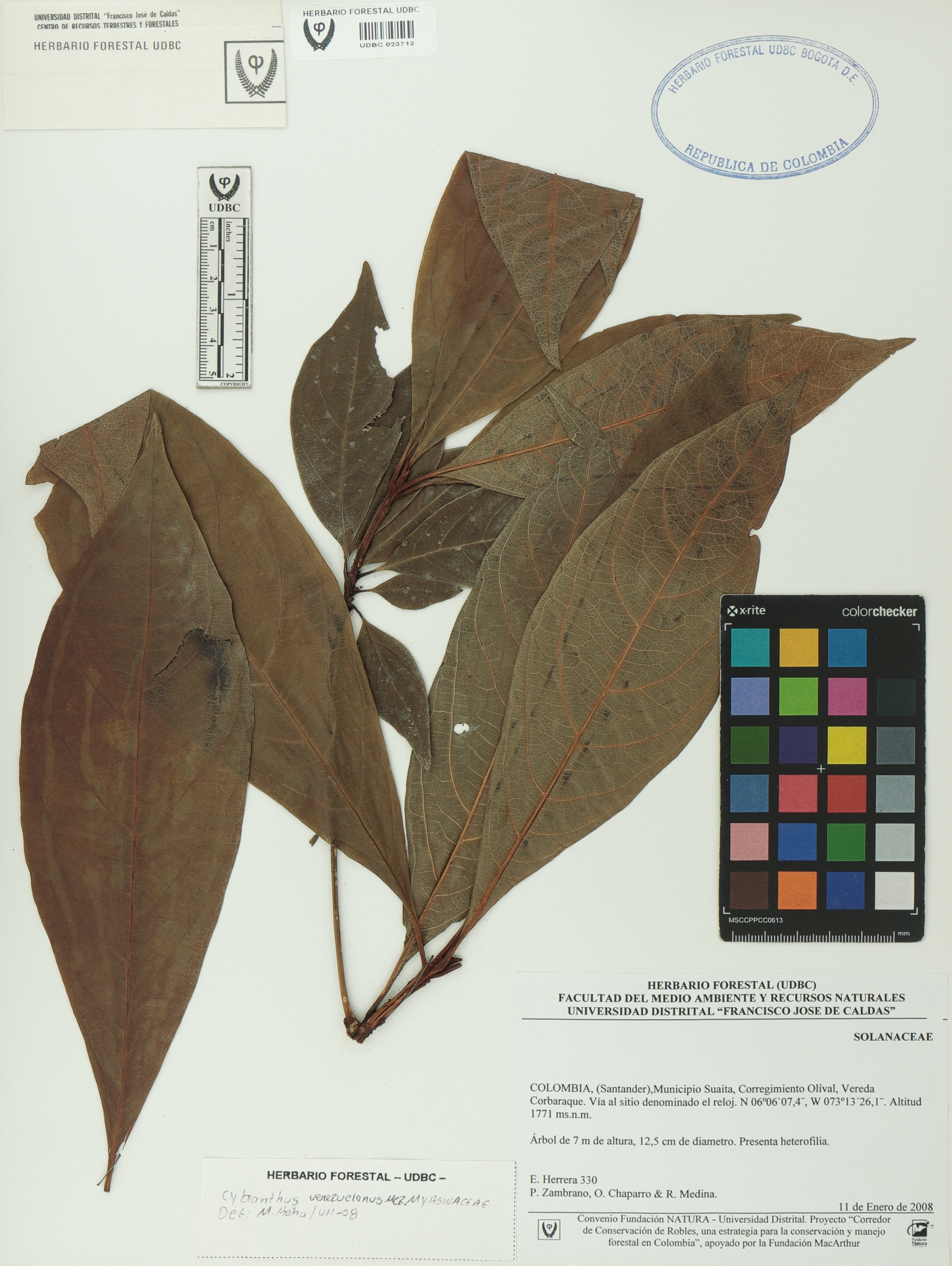 | dc.description | Fotografía del ejemplar Herrera, E. 330, determinado como Cybianthus venezuelanus en el año 2008 | |