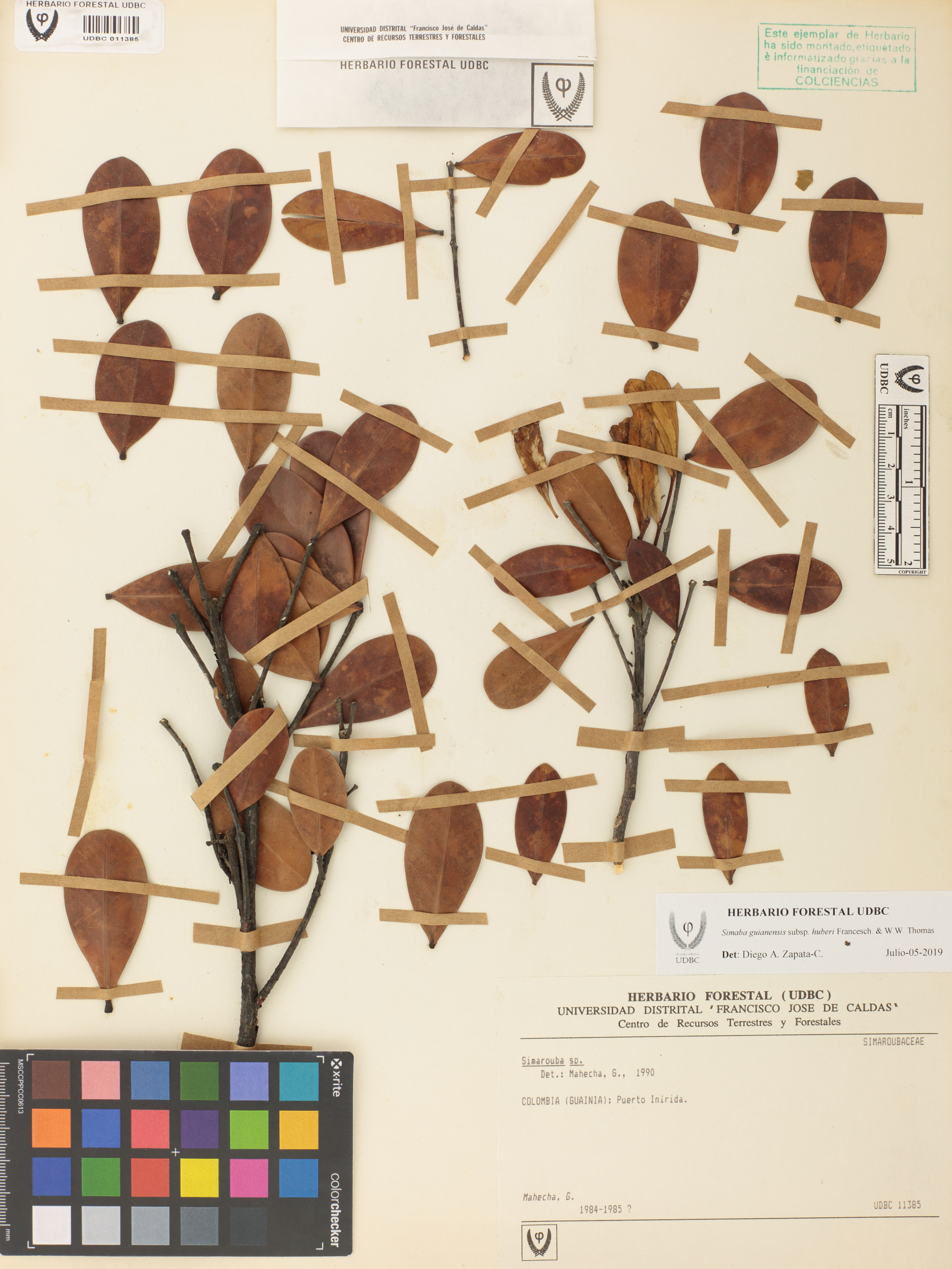Fotografía del ejemplar Mahecha, G., determinado como Simaba guianensis subsp. huberi en el año 2019