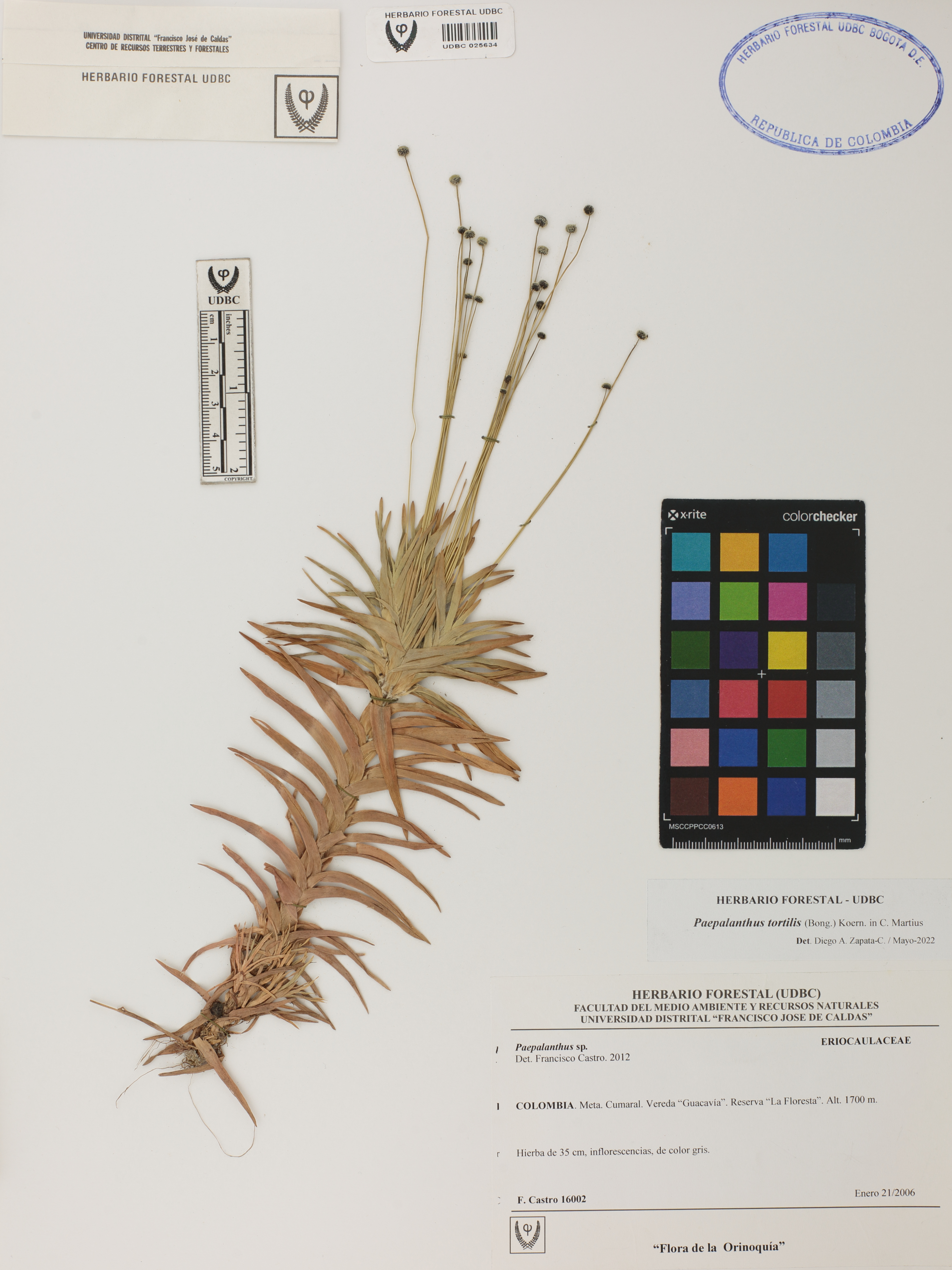 Fotografía del ejemplar Castro, F. 16002, determinado como Paepalanthus tortilis en el año 2022