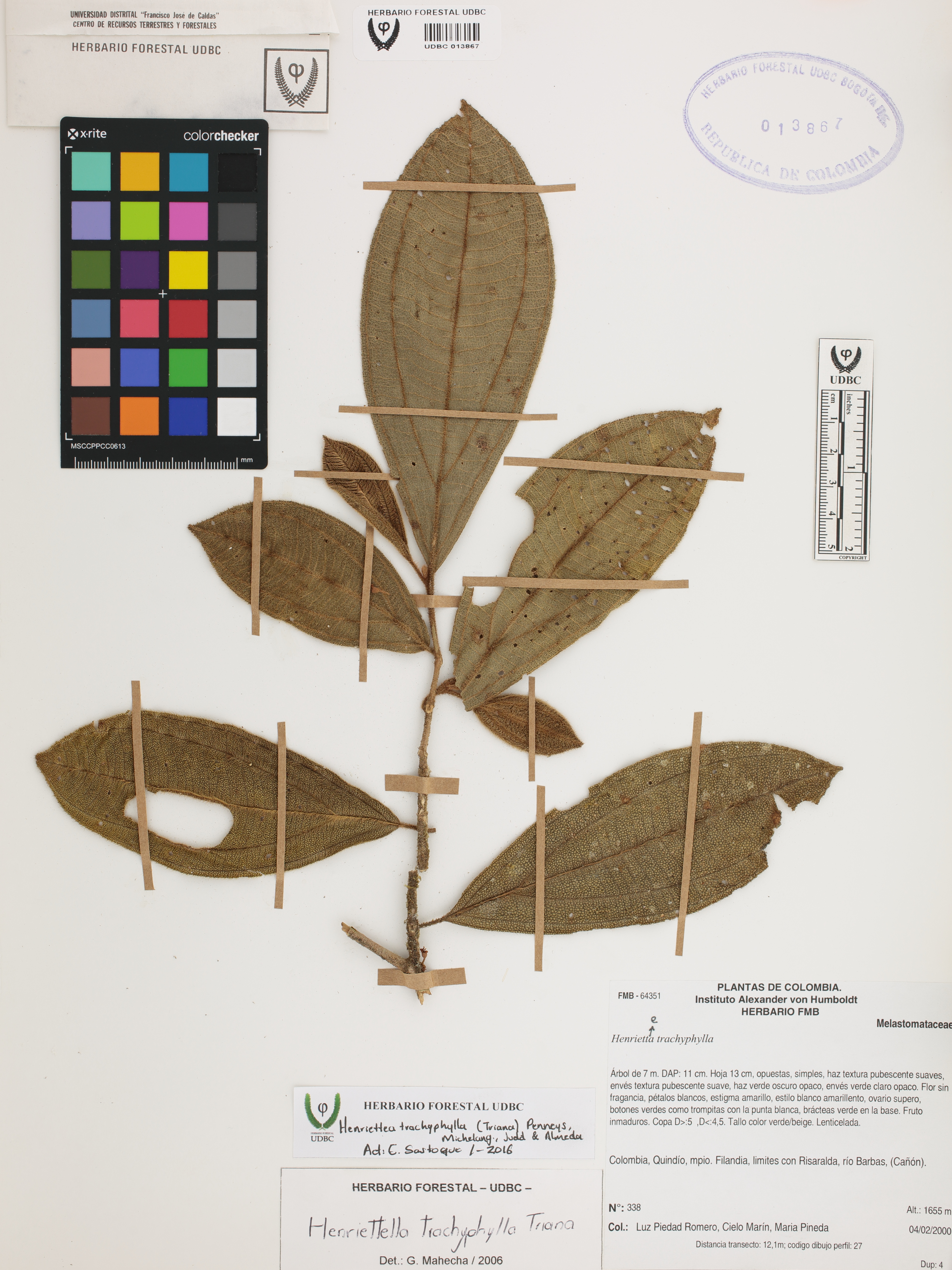 Fotografía del ejemplar Romero, L. 338, determinado como Henriettea trachyphylla en el año 2006