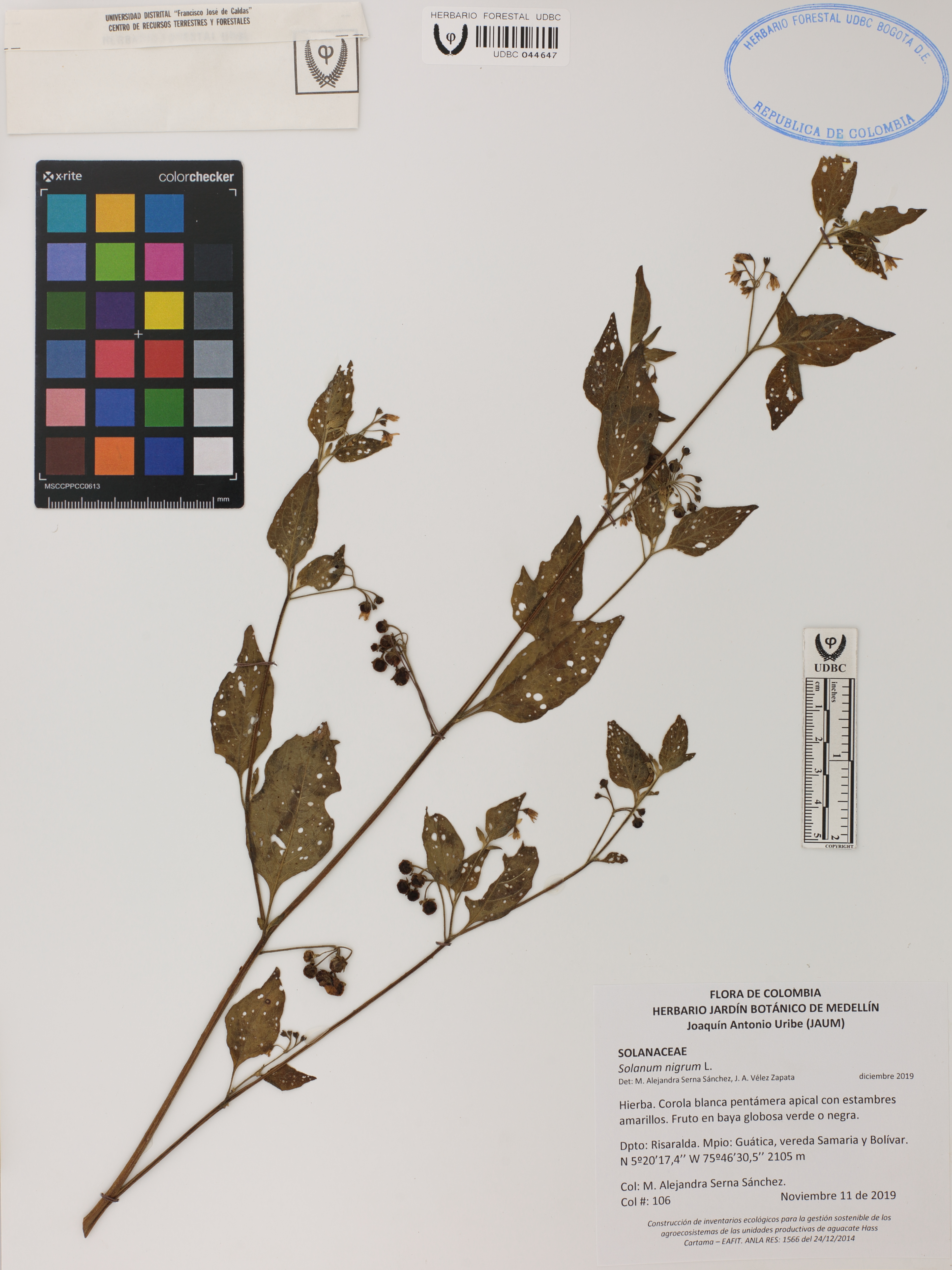 | dc.description | Fotografía del ejemplar Serna-Sánchez, M. 106, determinado como Solanum nigrum en el año 2019 | |