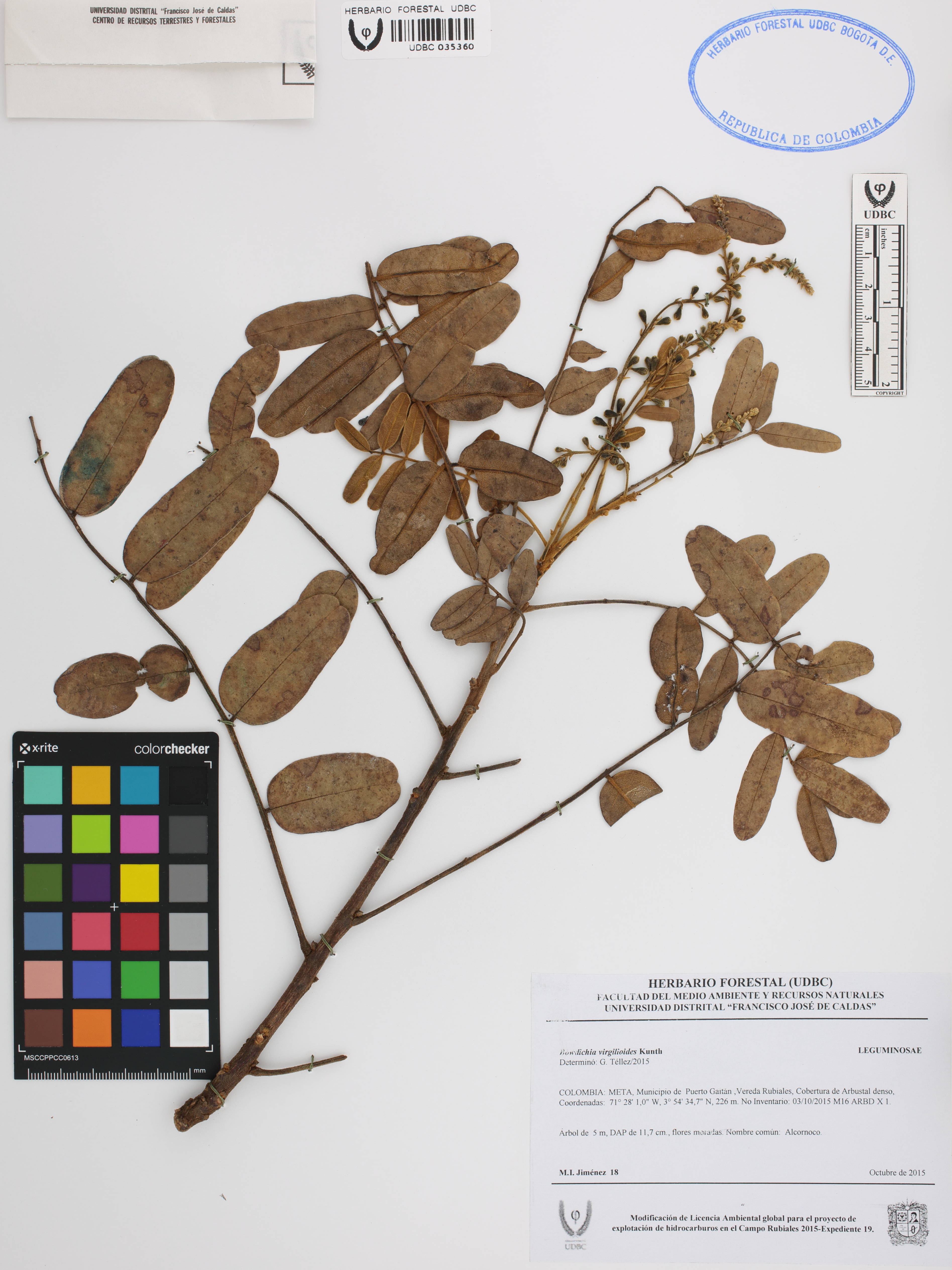 Fotografía del ejemplar Jiménez, M. 18, determinado como Bowdichia virgilioides en el año 2015