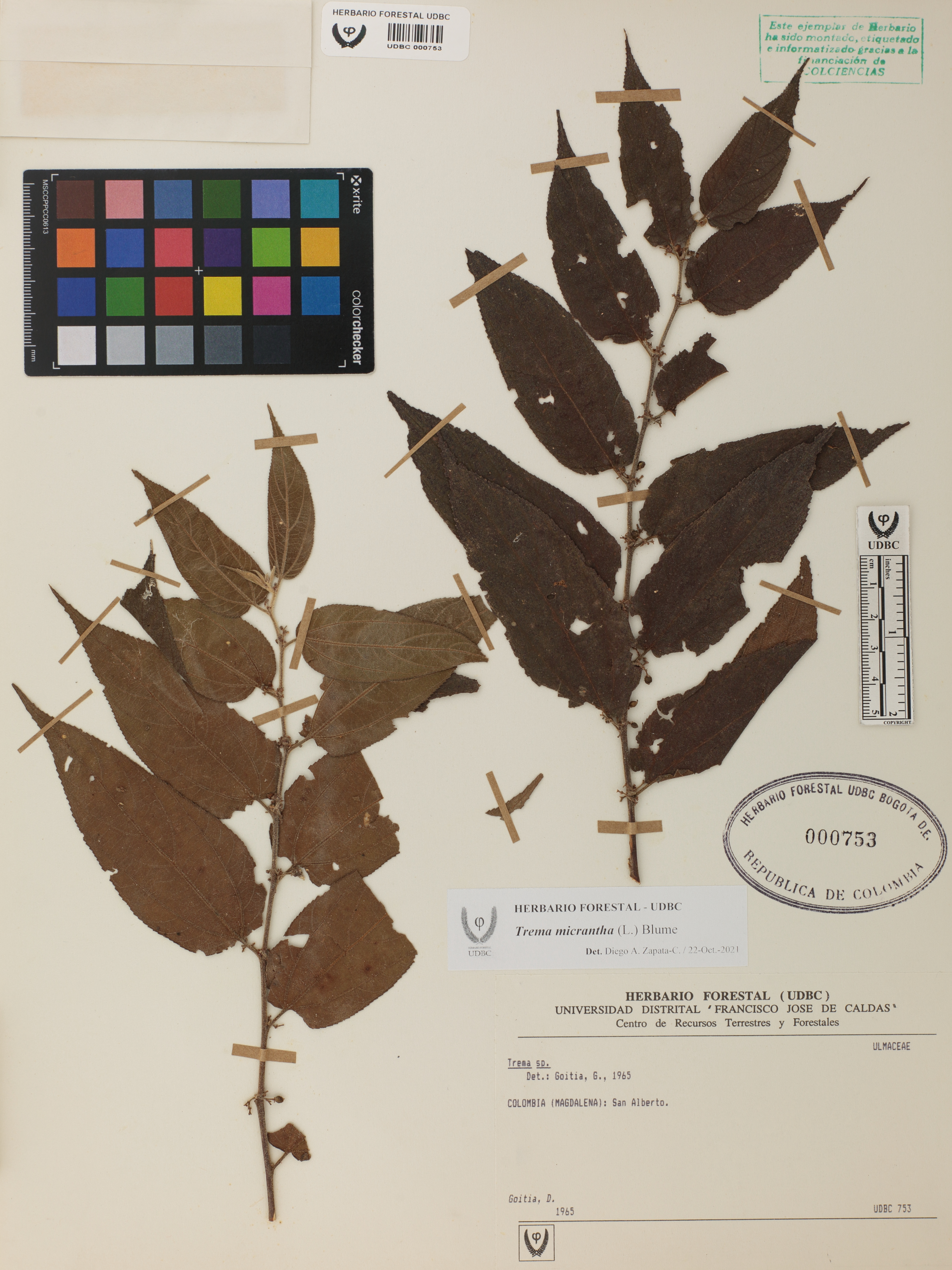 Fotografía del ejemplar Goitia, D., determinado como Trema micranthum en el año 2021