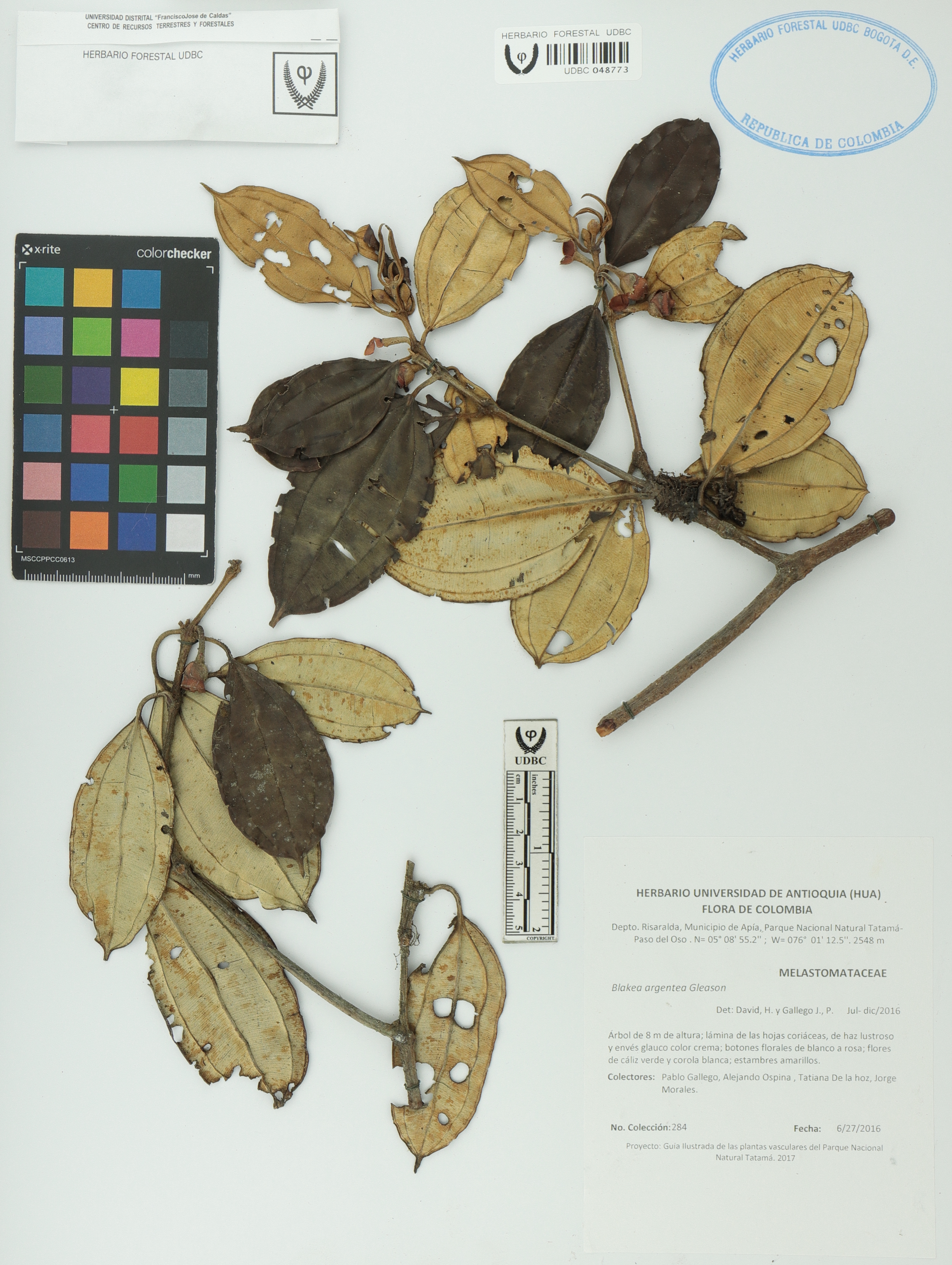 Fotografía del ejemplar Gallego, P. 284, determinado como Blakea argentea en el año 2016