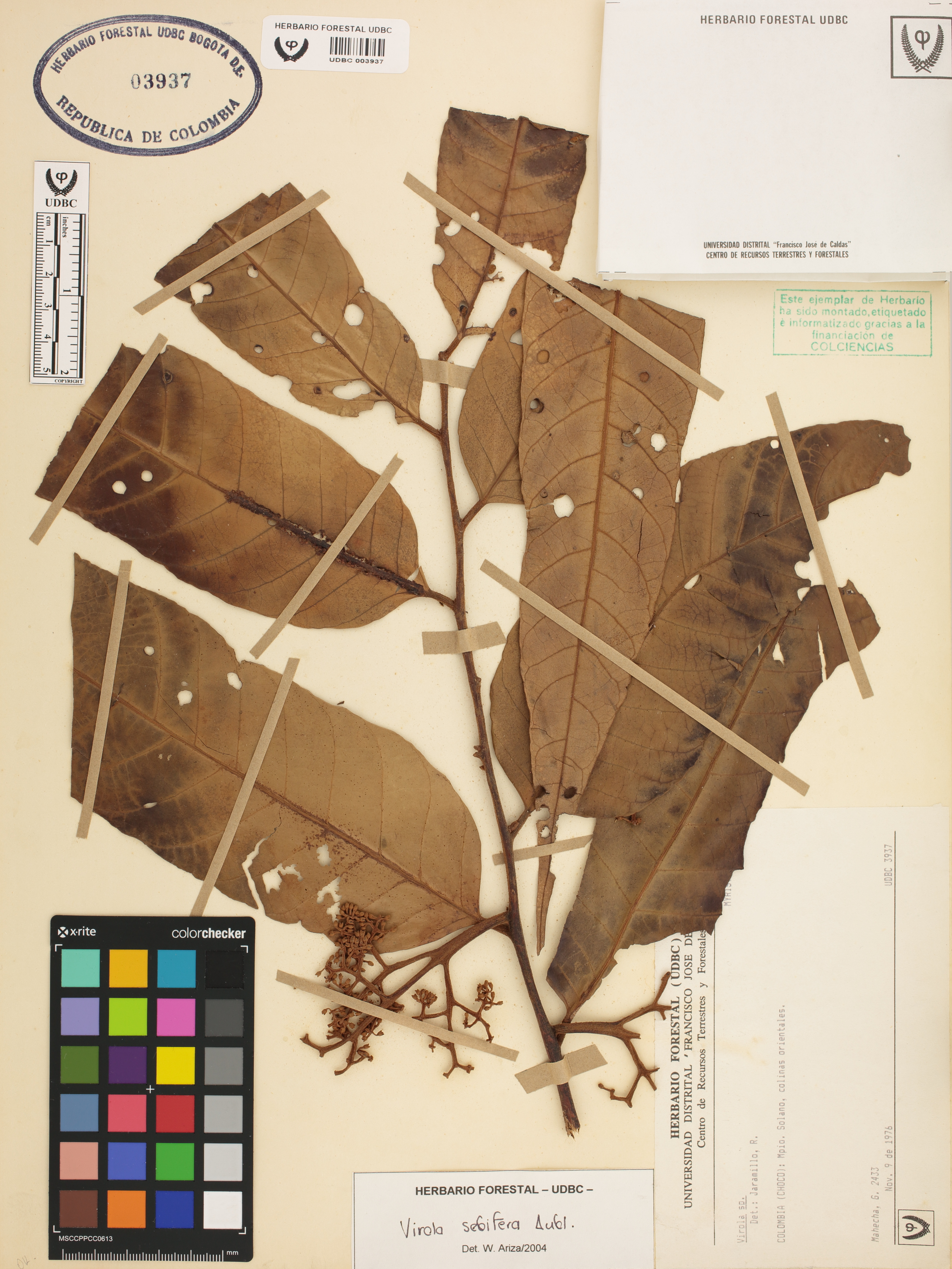 Fotografía del ejemplar Mahecha, G. 2433, determinado como Virola sebifera en el año 2004