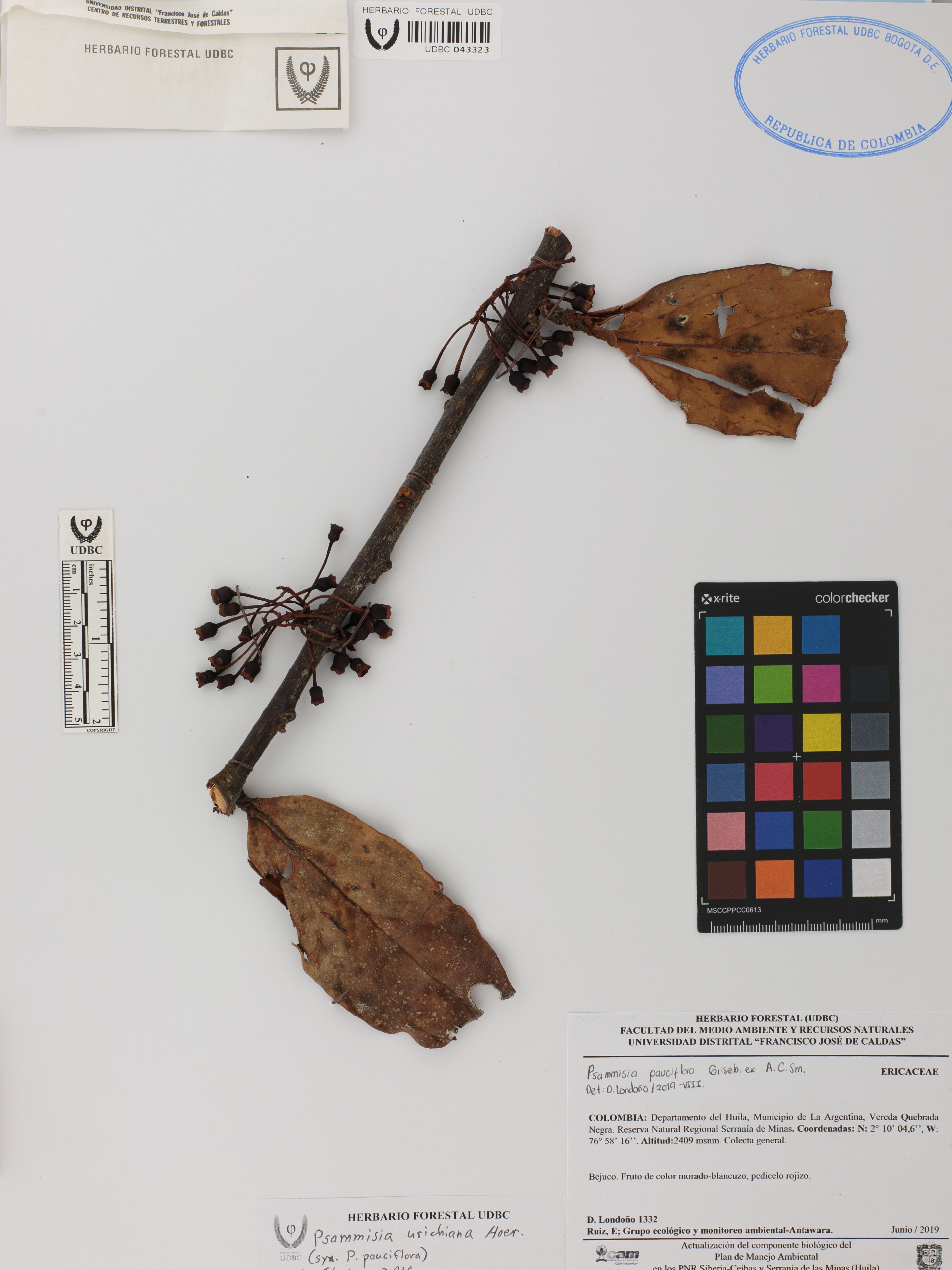 Fotografía del ejemplar Londoño, D. 1332, determinado como Psammisia urichiana en el año 2019
