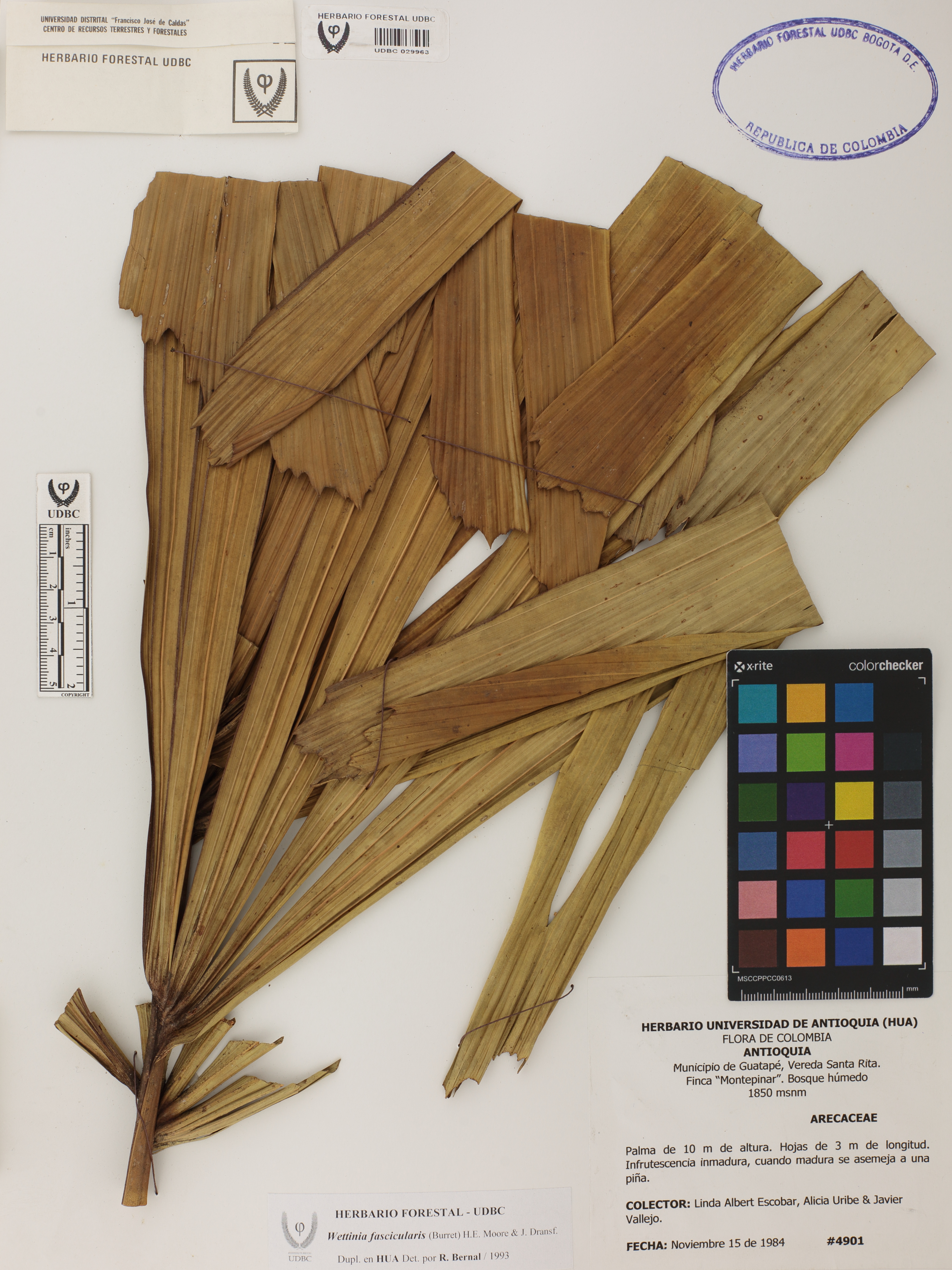 Fotografía del ejemplar Albert de E., L. 4901, determinado como Wettinia fascicularis en el año 1993