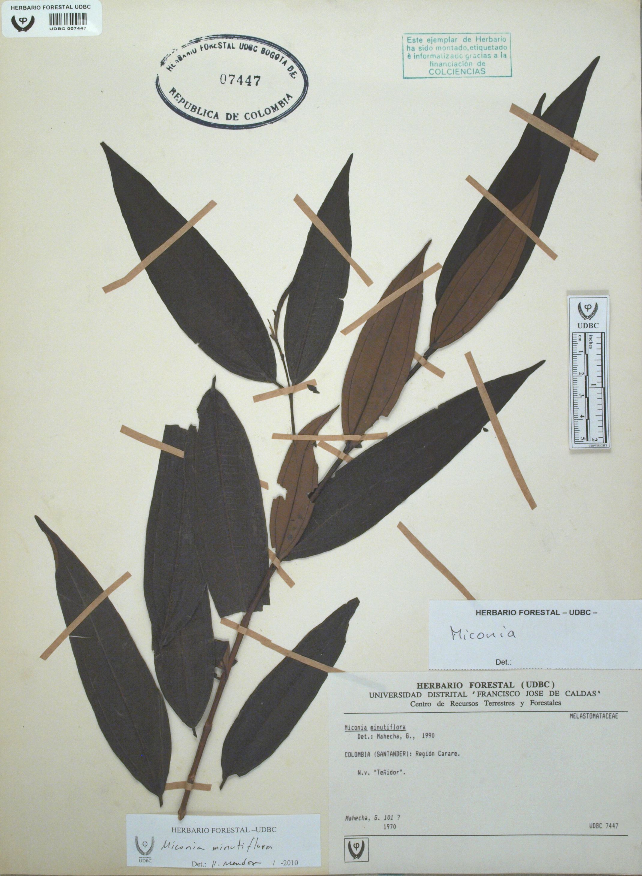 Fotografía del ejemplar Mahecha, G. 101, determinado como Miconia minutiflora en el año 2010