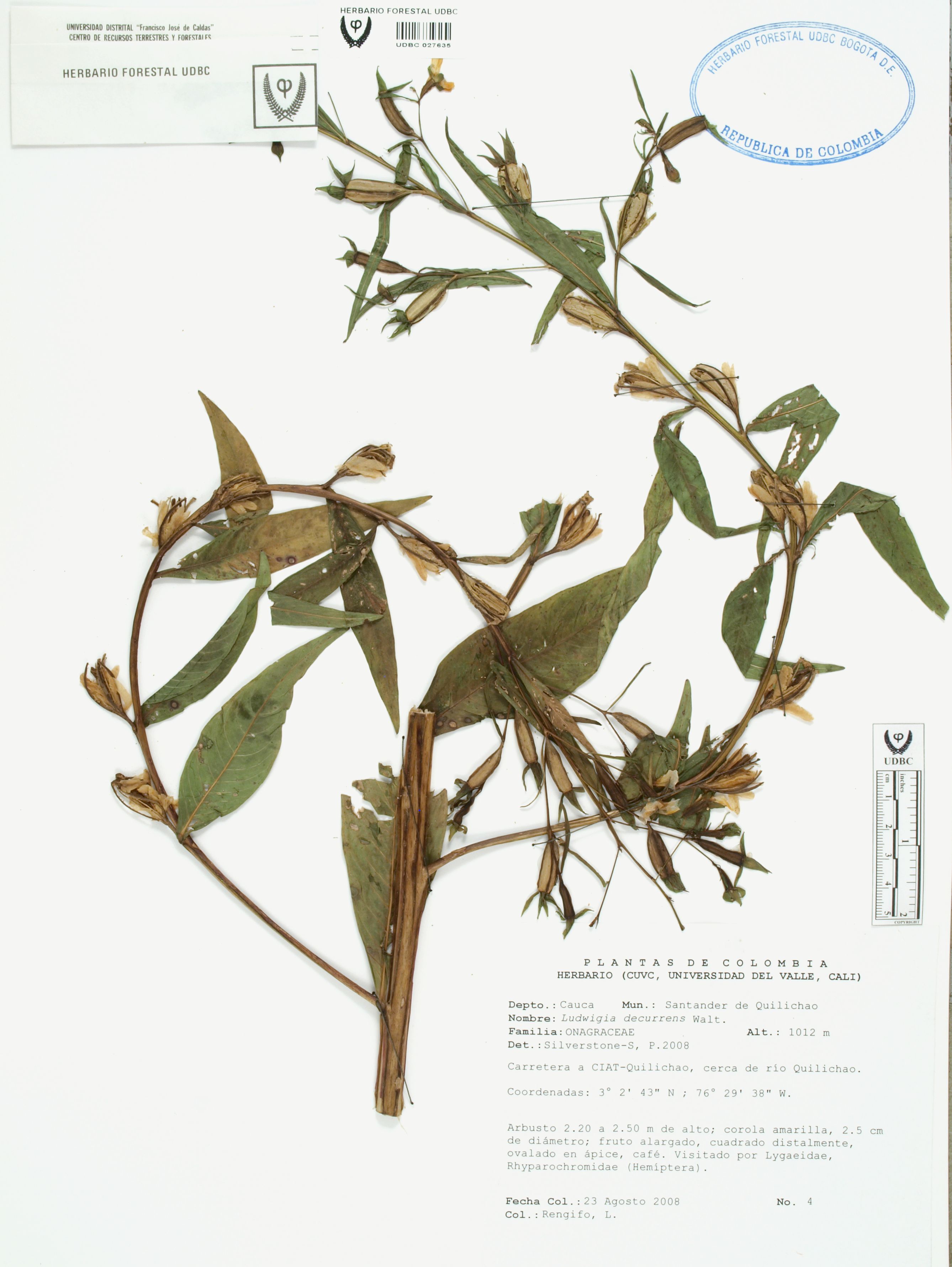 Fotografía del ejemplar Rengifo, L. 4, determinado como Ludwigia decurrens en el año 2008
