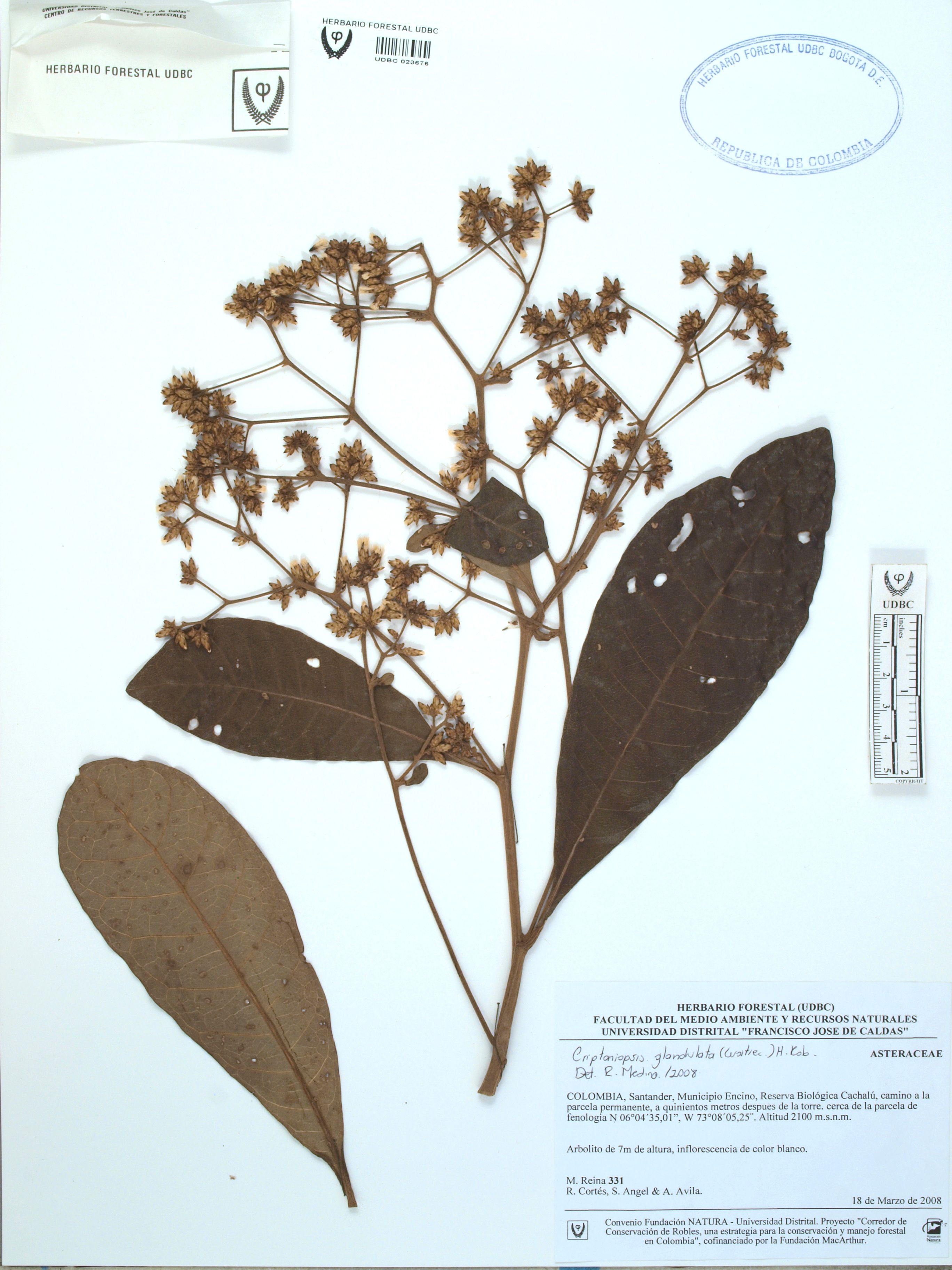 | dc.description | Fotografía del ejemplar Reina, M. 331, determinado como Critoniopsis glandulata en el año 2008 | |