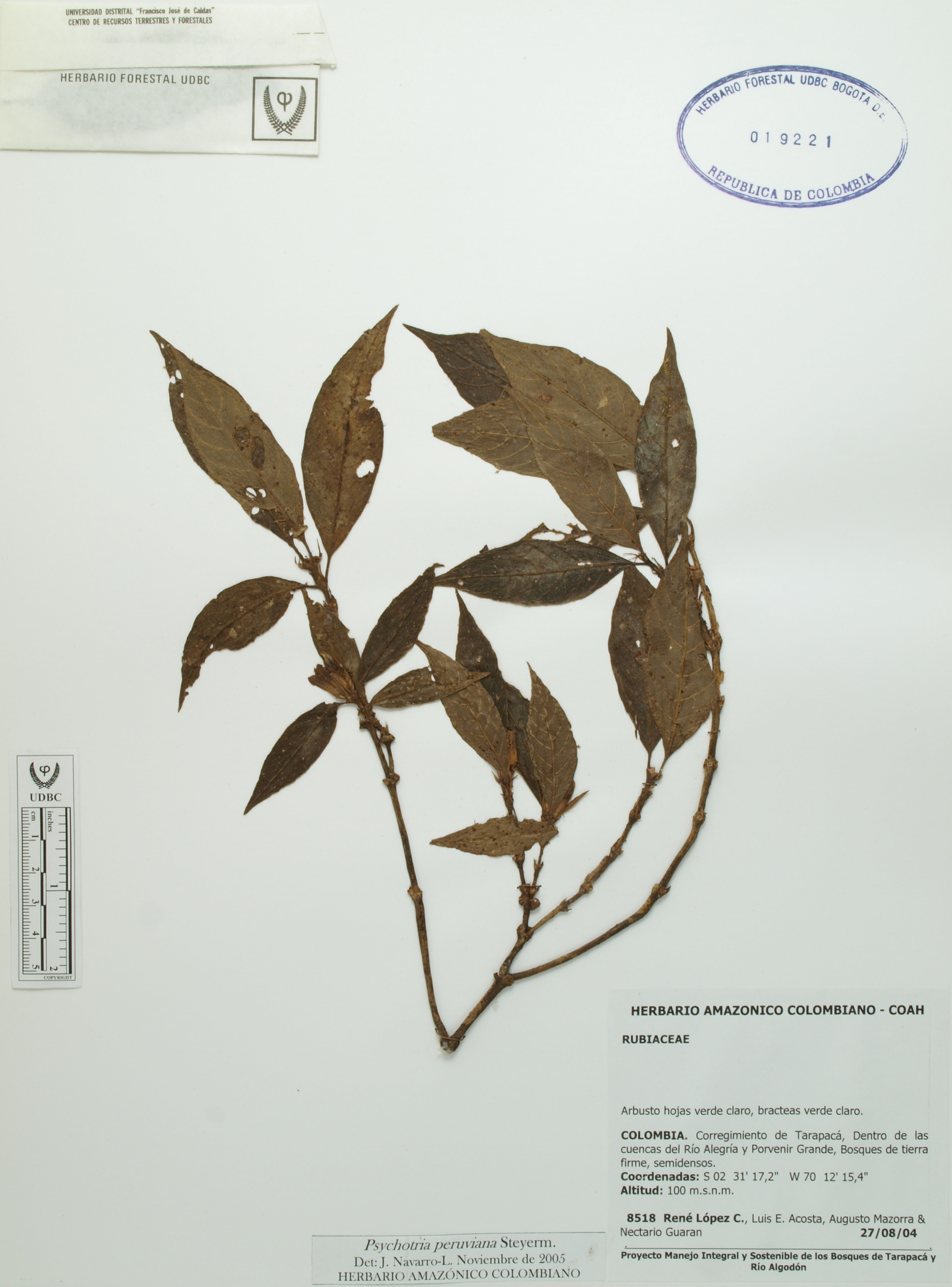 | dc.description | Fotografía del ejemplar López, R. 8518, determinado como Psychotria peruviana en el año 2005 | |