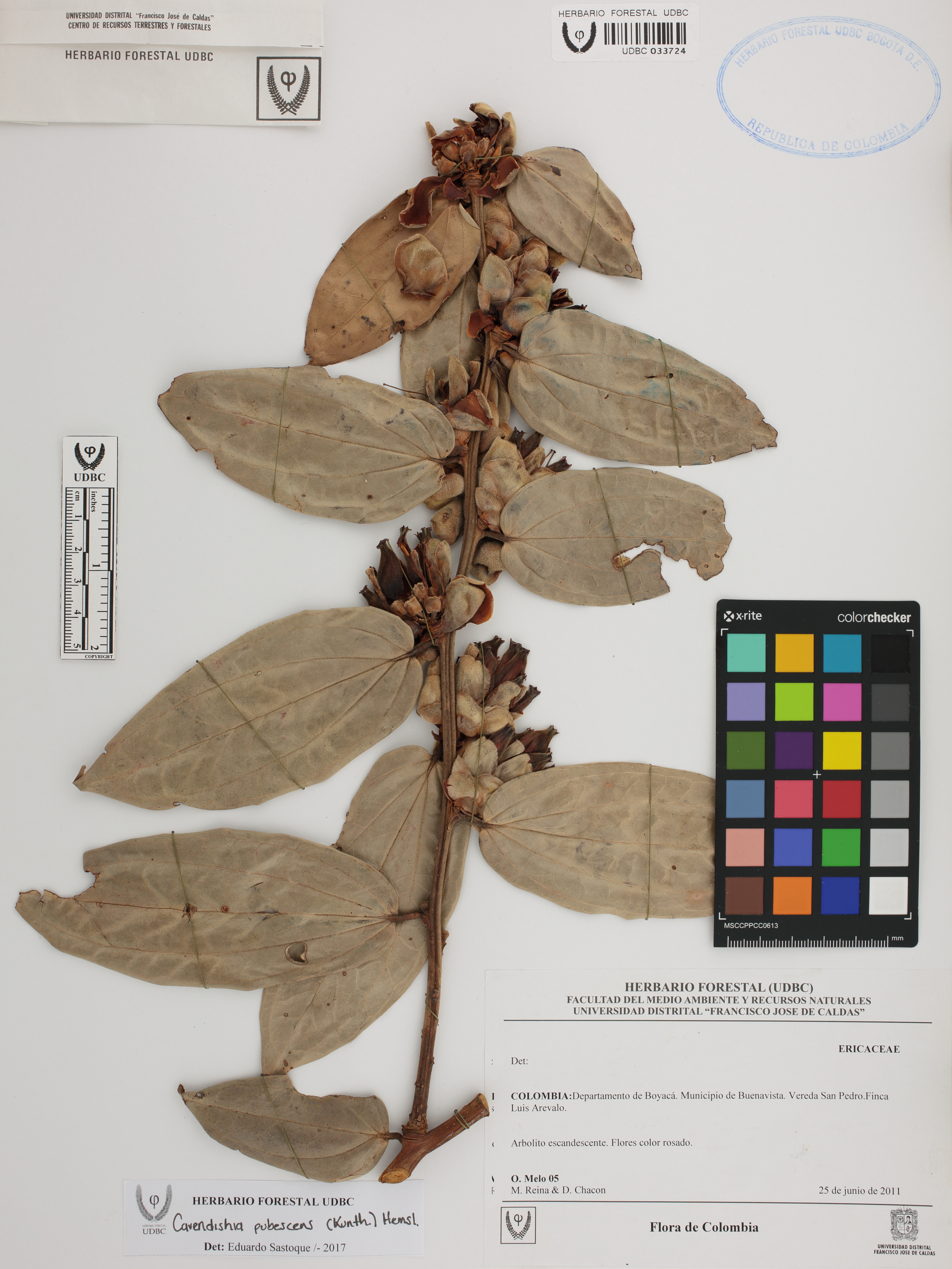 Fotografía del ejemplar Melo, O. 5, determinado como Cavendishia pubescens en el año 2017