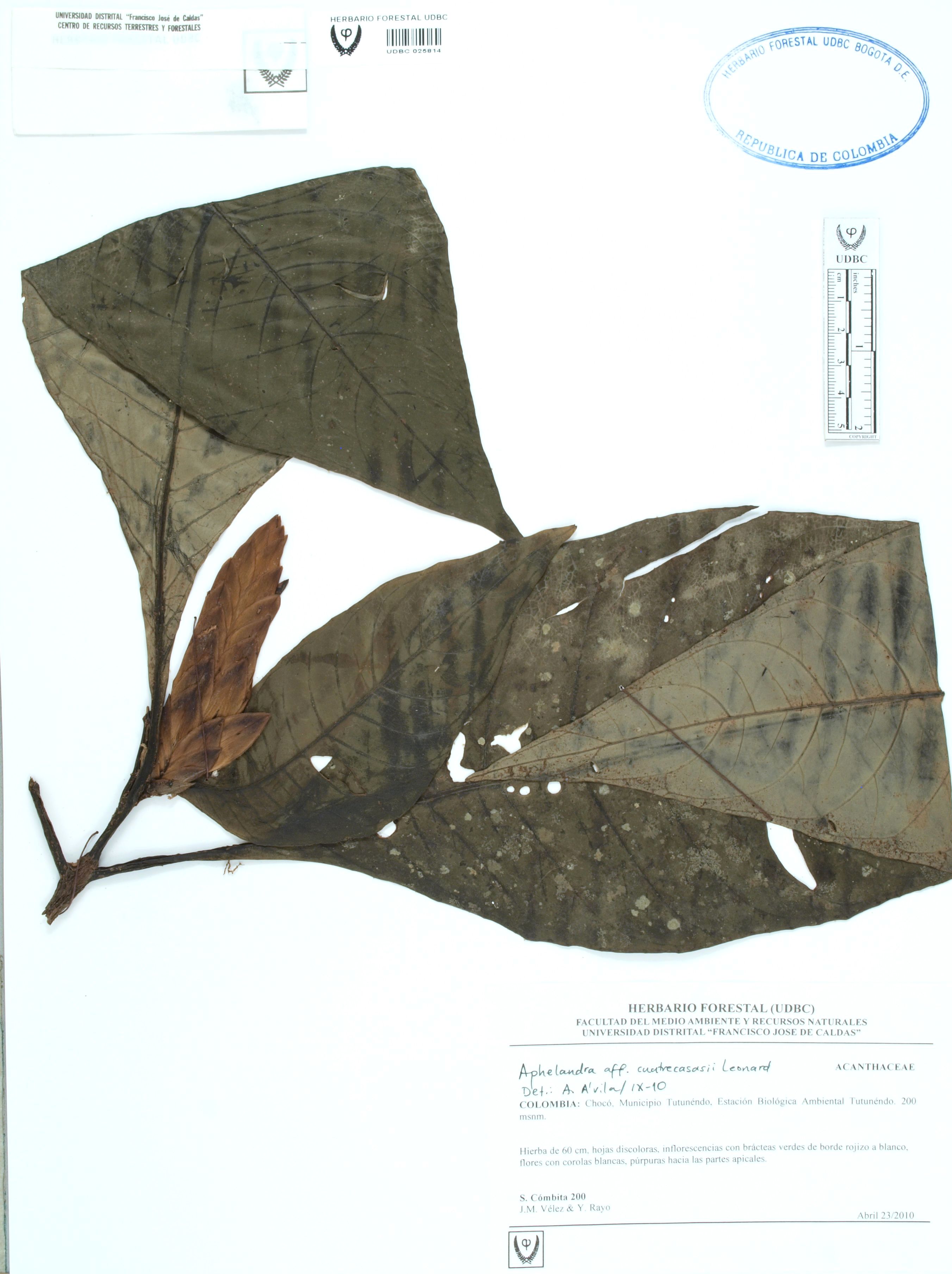 | dc.description | Fotografía del ejemplar Cómbita, S. 200, determinado como Aphelandra cuatrecasasii en el año 2010 | |