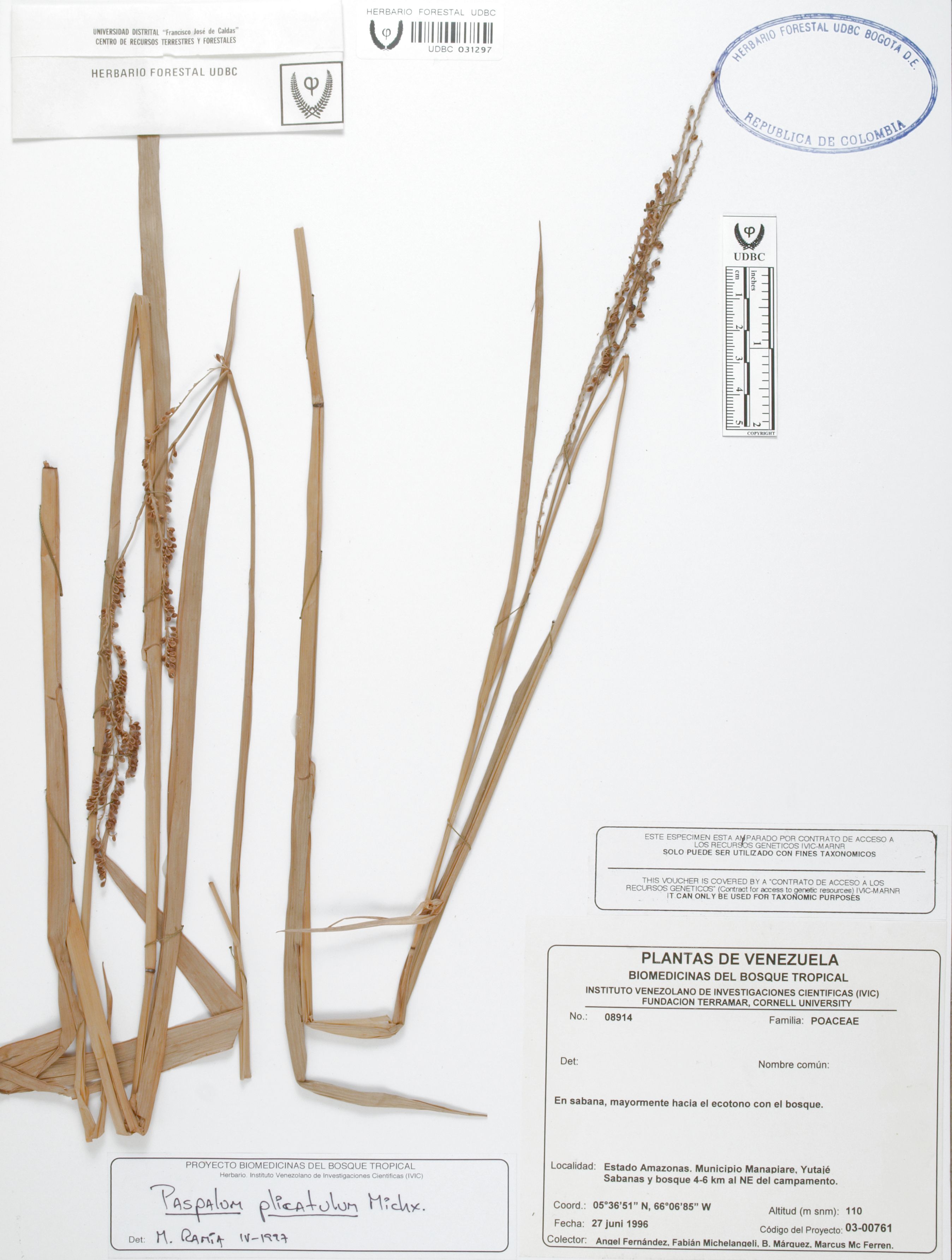 Fotografía del ejemplar Fernández, A. 8914, determinado como Paspalum plicatulum en el año 1997