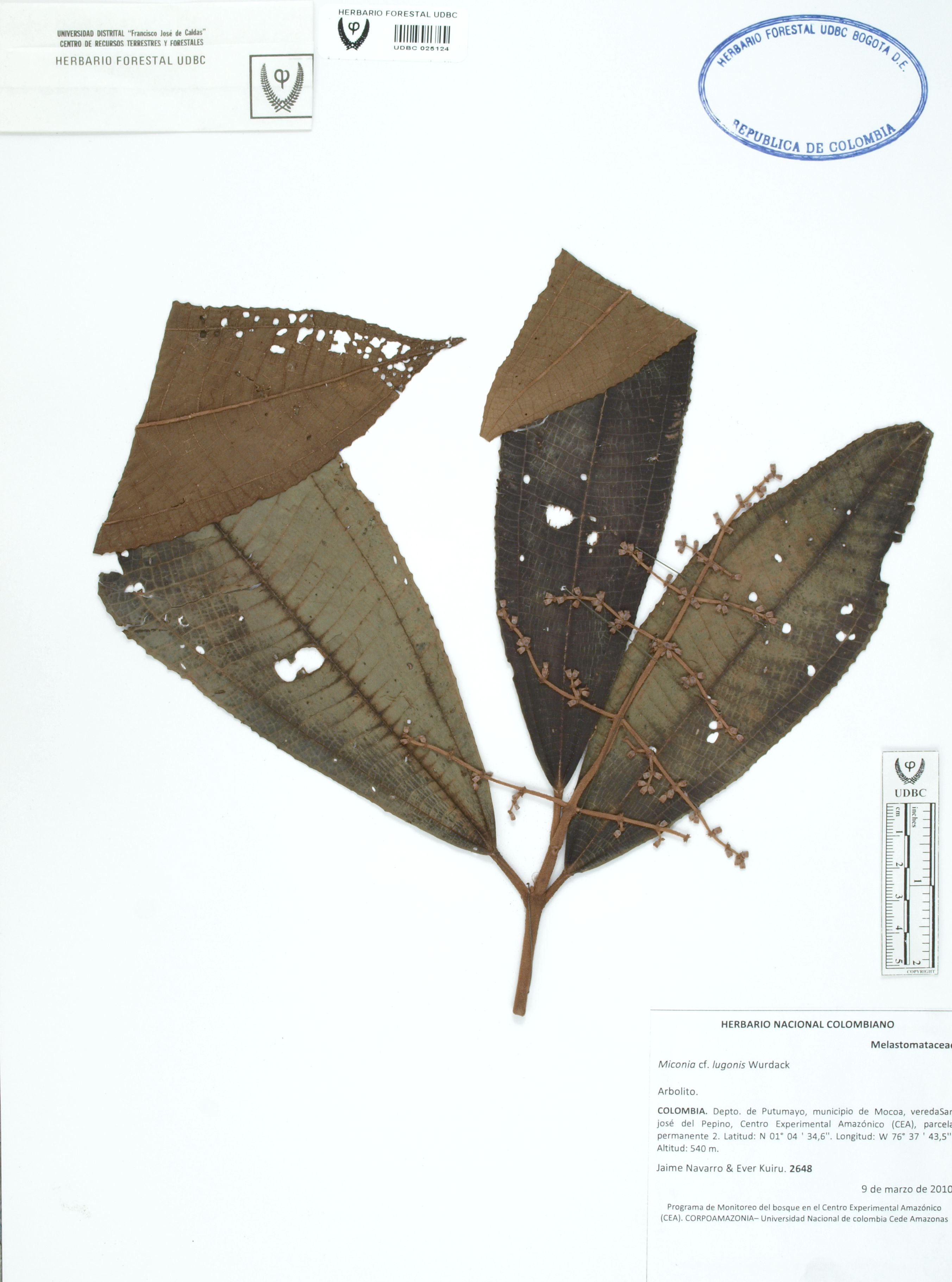 | dc.description | Fotografía del ejemplar Navarro, J. 2648, determinado como Miconia lugonis | |