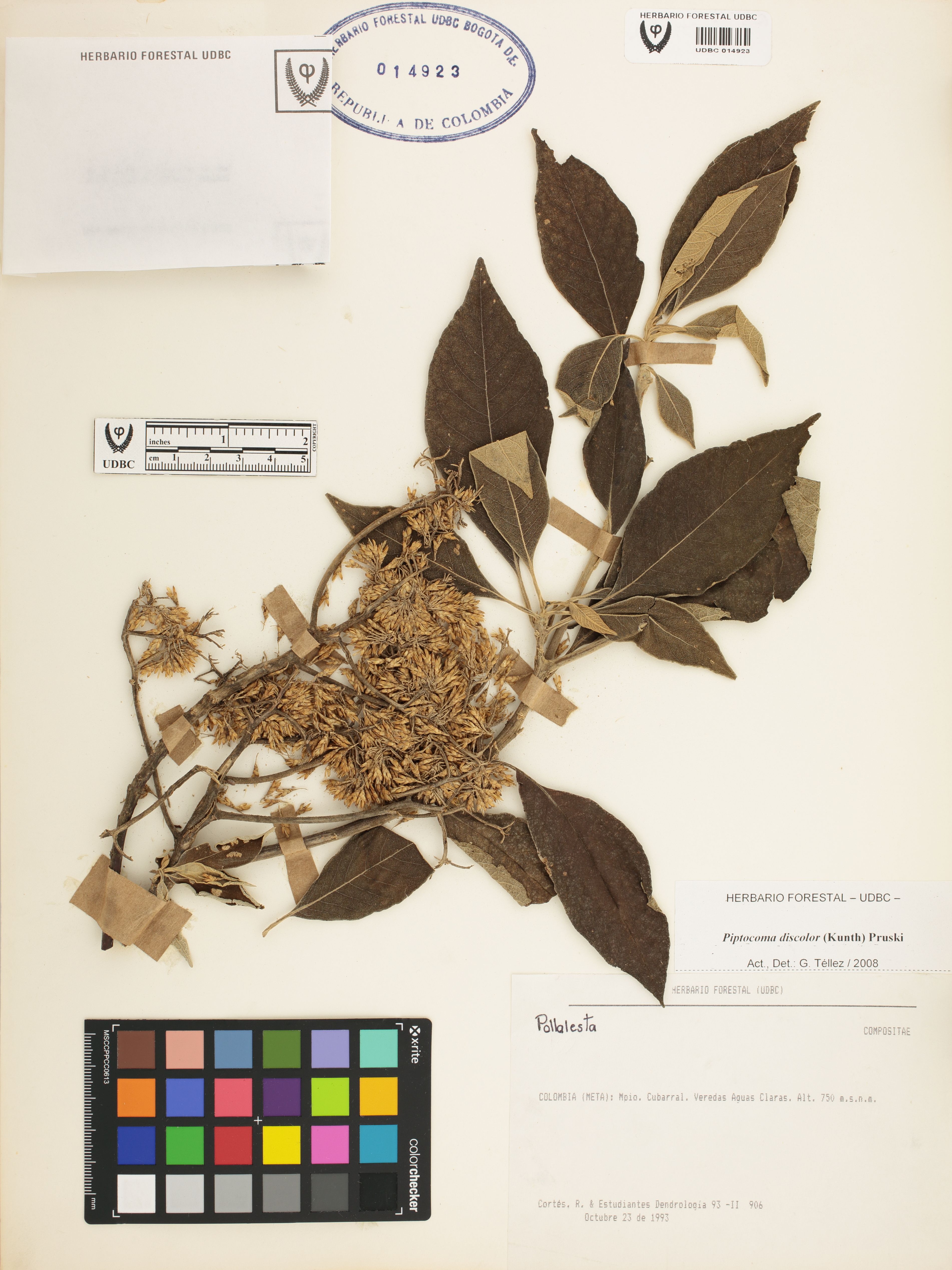 Fotografía del ejemplar Cortés, R. 906, determinado como Piptocoma discolor en el año 2008