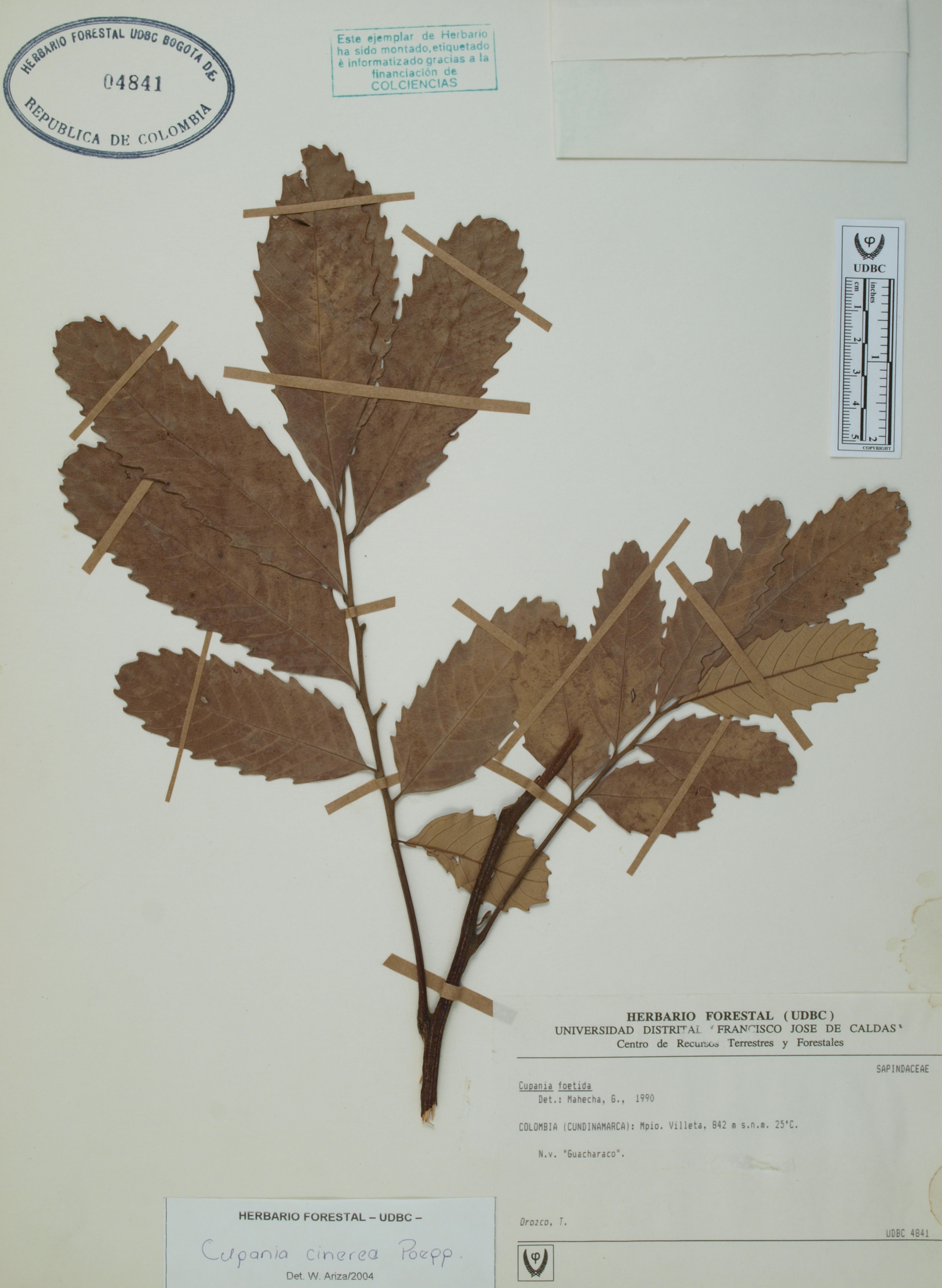 | dc.description | Fotografía del ejemplar Orozco, T. 8, determinado como Cupania cinerea en el año 2004 | |