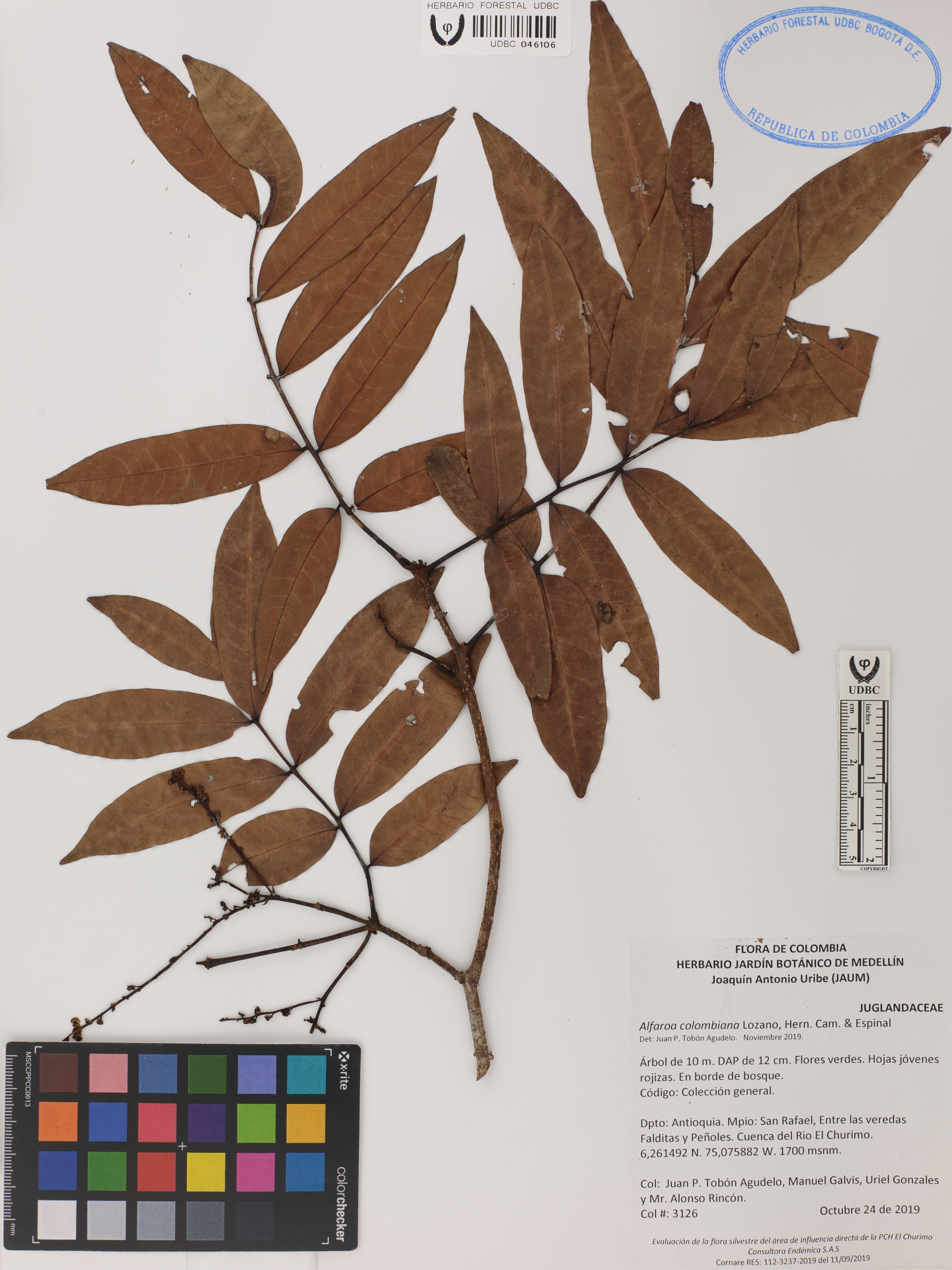 | dc.description | Fotografía del ejemplar Tobón-Agudelo, J. 3126, determinado como Alfaroa colombiana en el año 2019 | |