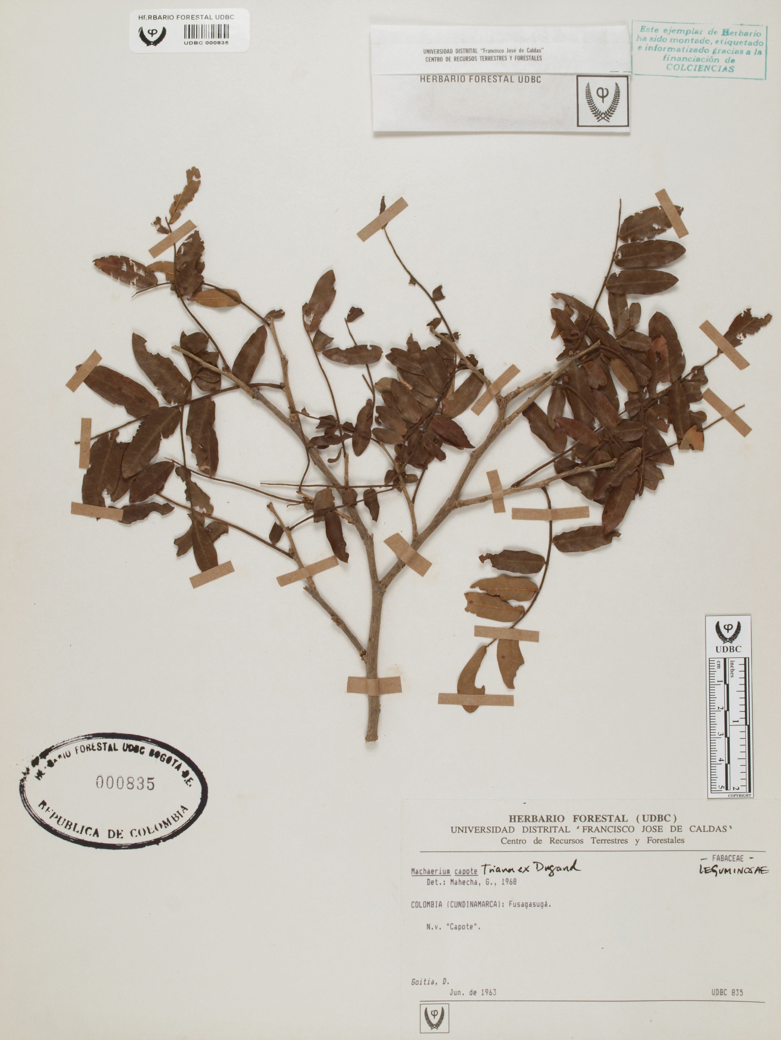 | dc.description | Fotografía del ejemplar Goitia, D., determinado como Machaerium capote en el año 1968 | |