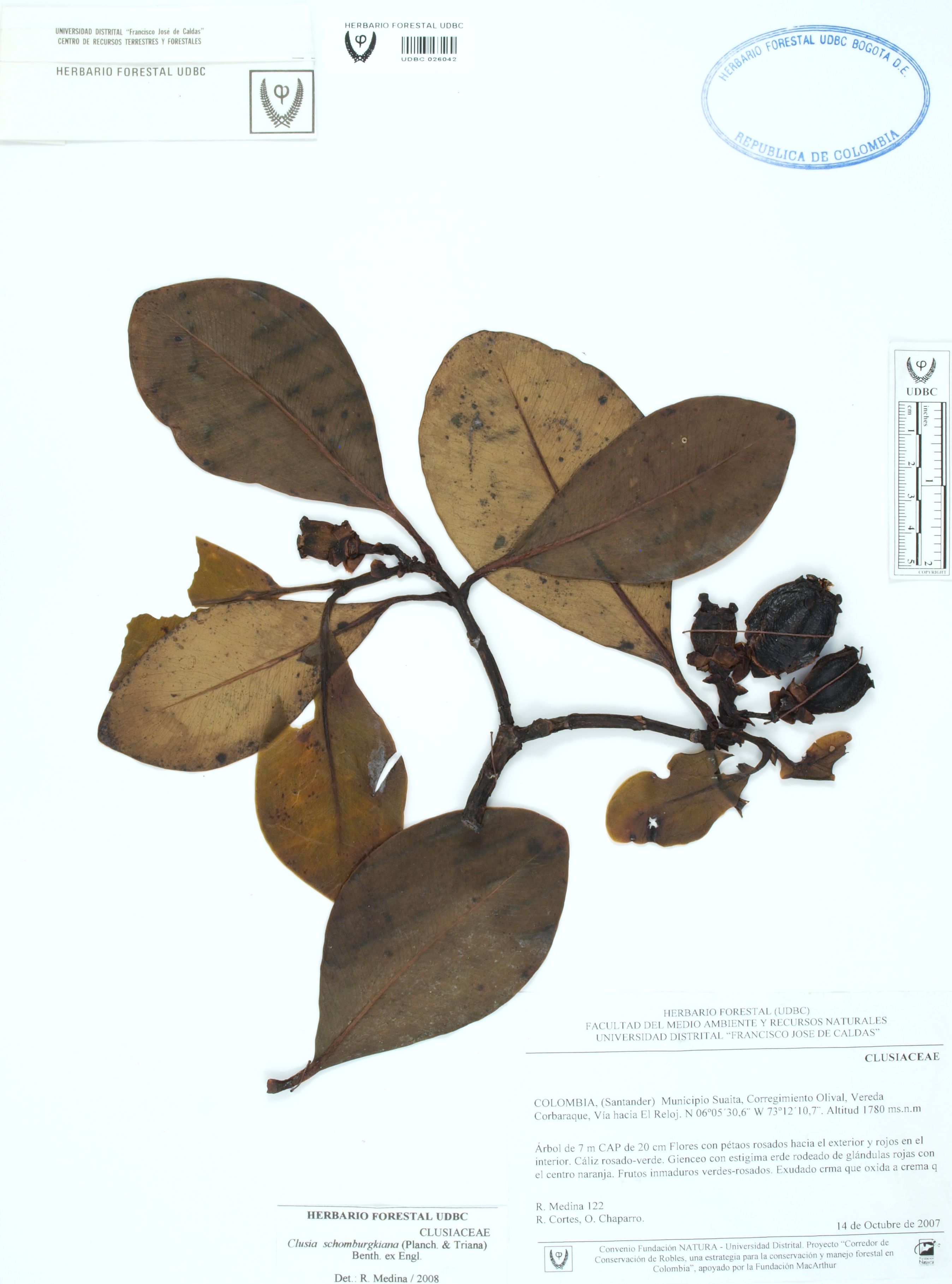 Fotografía del ejemplar Medina, R. 122, determinado como Clusia schomburgkiana en el año 2008