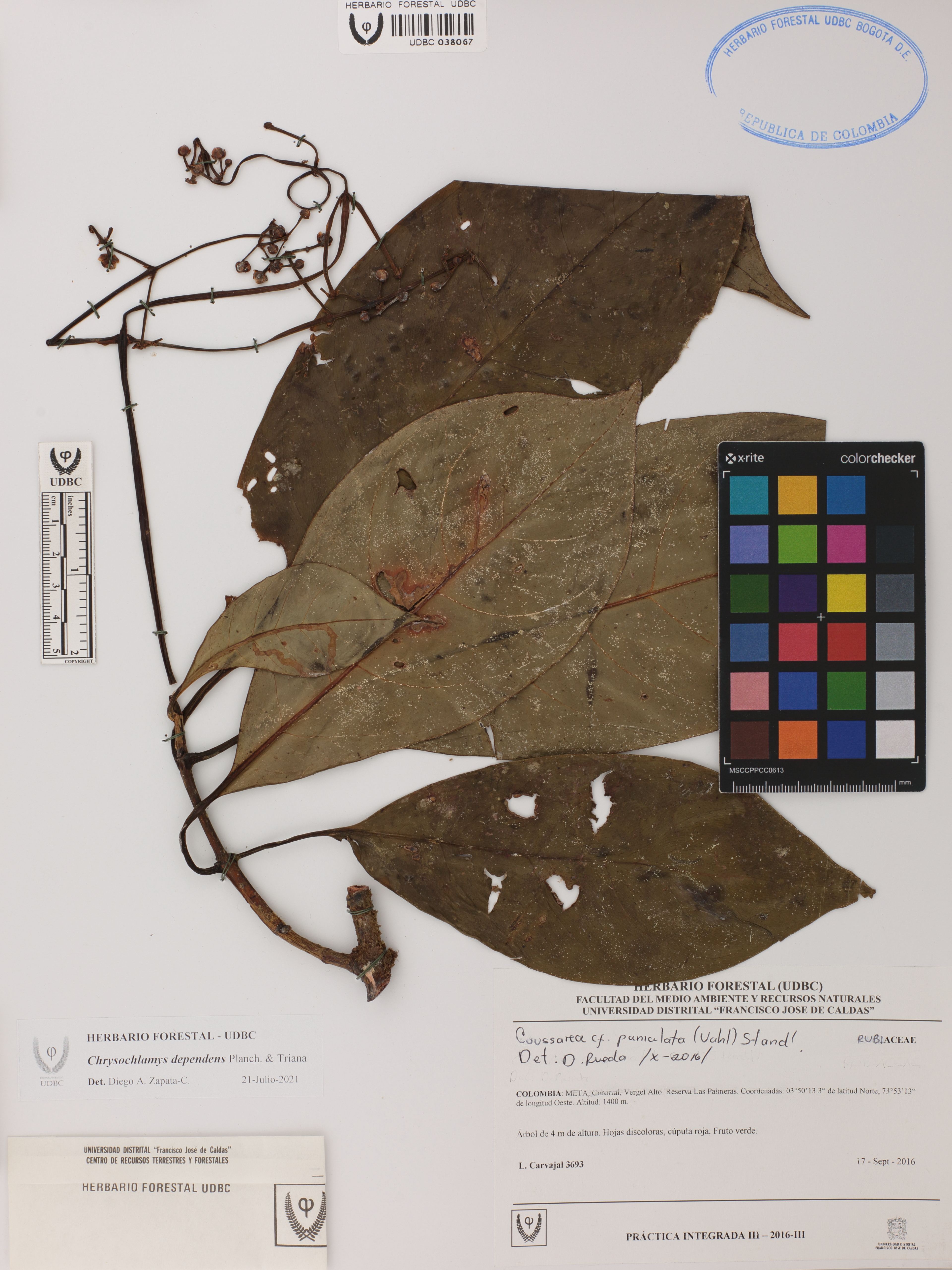 | dc.description | Fotografía del ejemplar Carvajal, L. 3693, determinado como Chrysochlamys dependens en el año 2021 | |